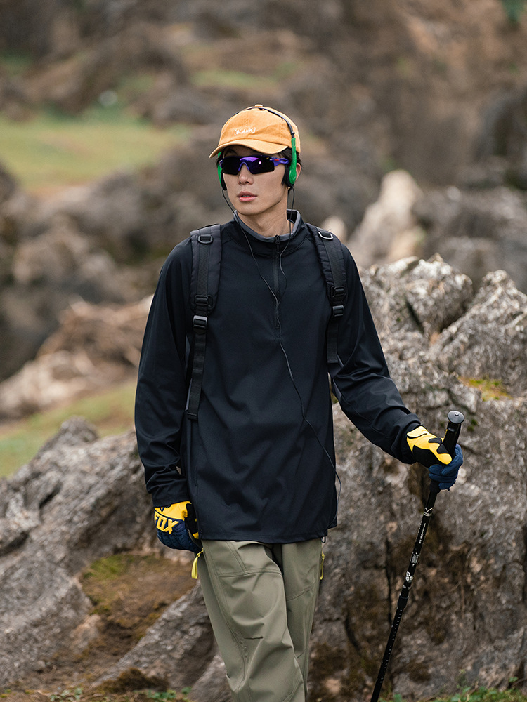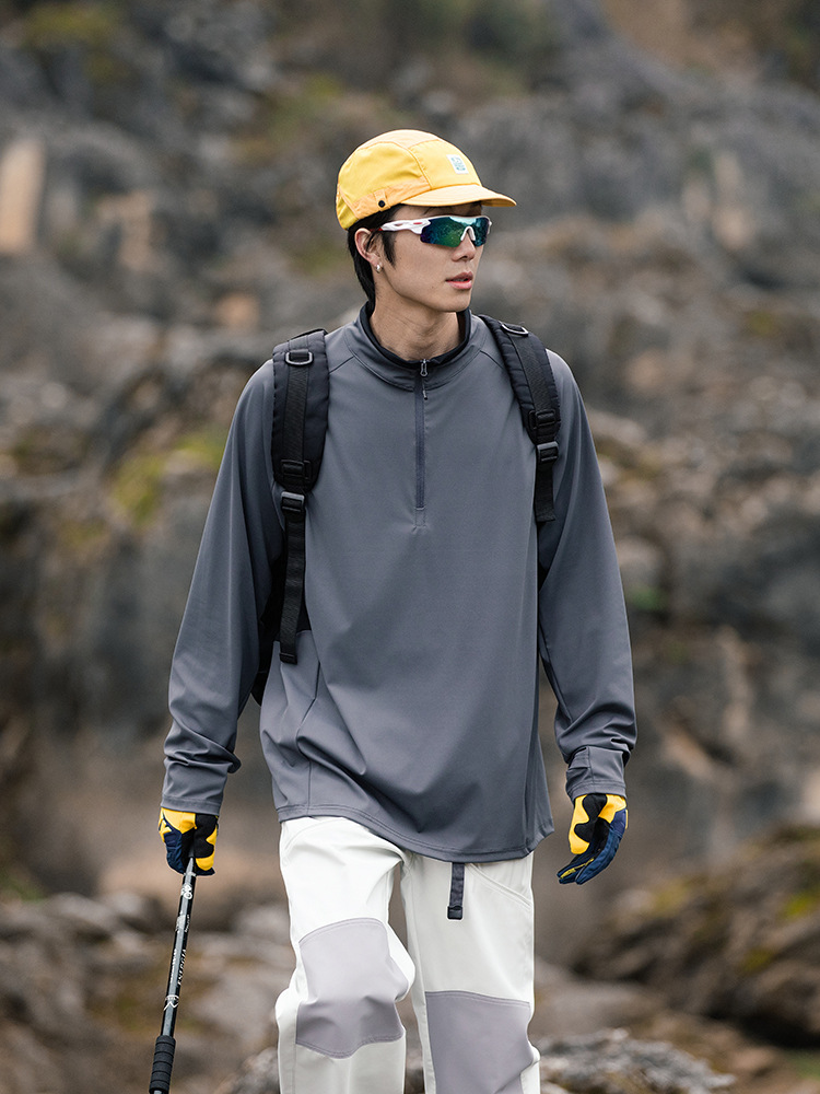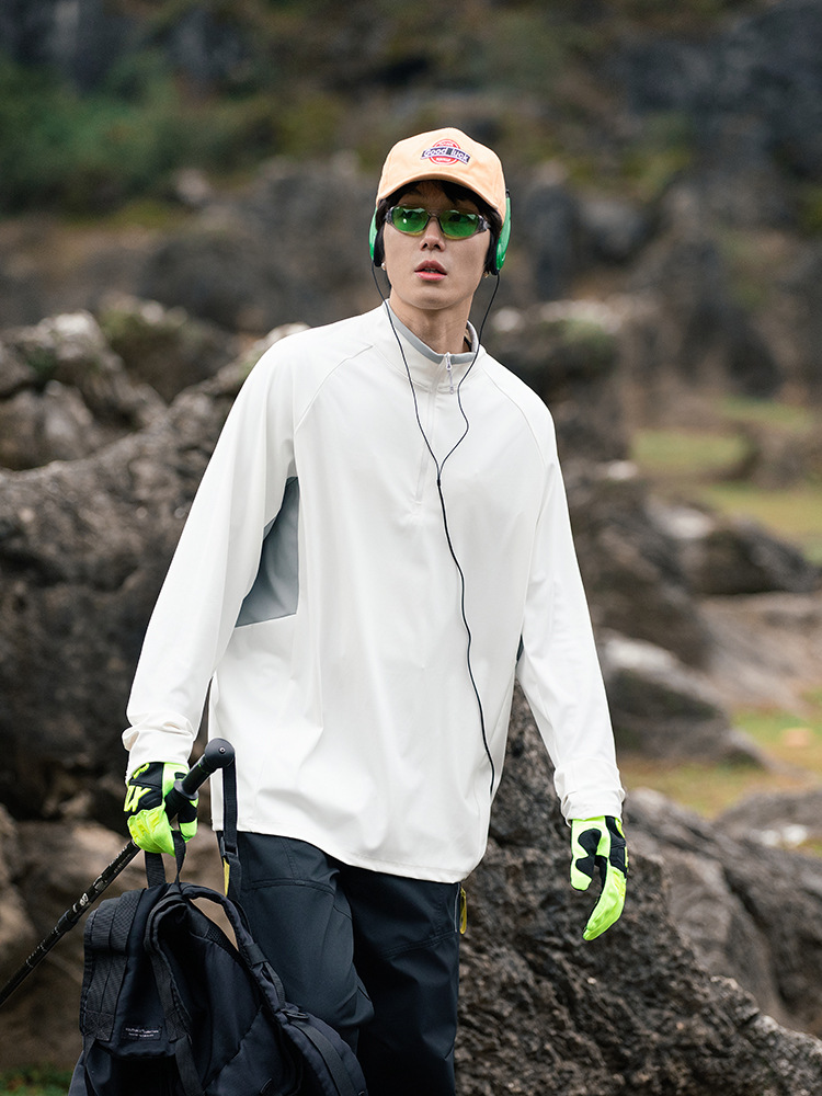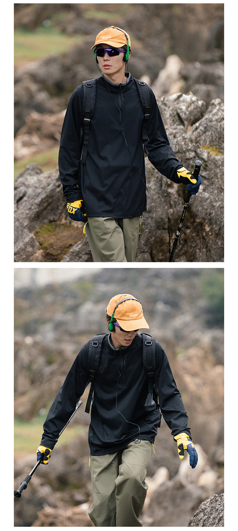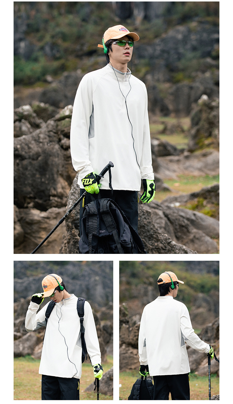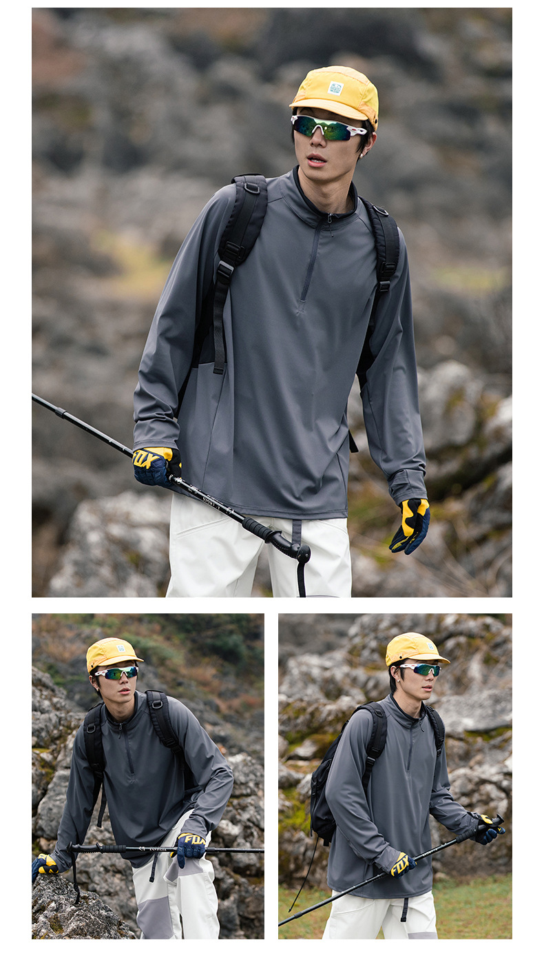 IZEXX 패션 브랜드 봄 야외 스포츠 선 스크린 빠른 건조 긴 소매 티셔츠 남성 달리기 등산 피트니스 스티칭 탑