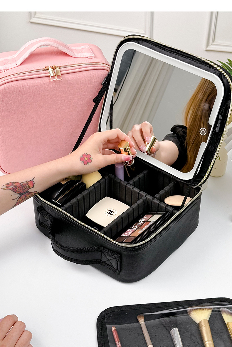 거울이 있는 인기 있는 크로스보더 화장품 가방, 고급스러운 LED 대용량 화장품 케이스, 조명이 있는 메이크업 아티스트용 화장품 가방, 제조사 직판스토어 가기