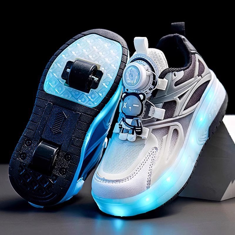 걸스 힐루 신발 봄 새로운 어린이 쿨로 미 버스트 워킹 도르래 신발 빛나는 2 륜 개폐식 소녀