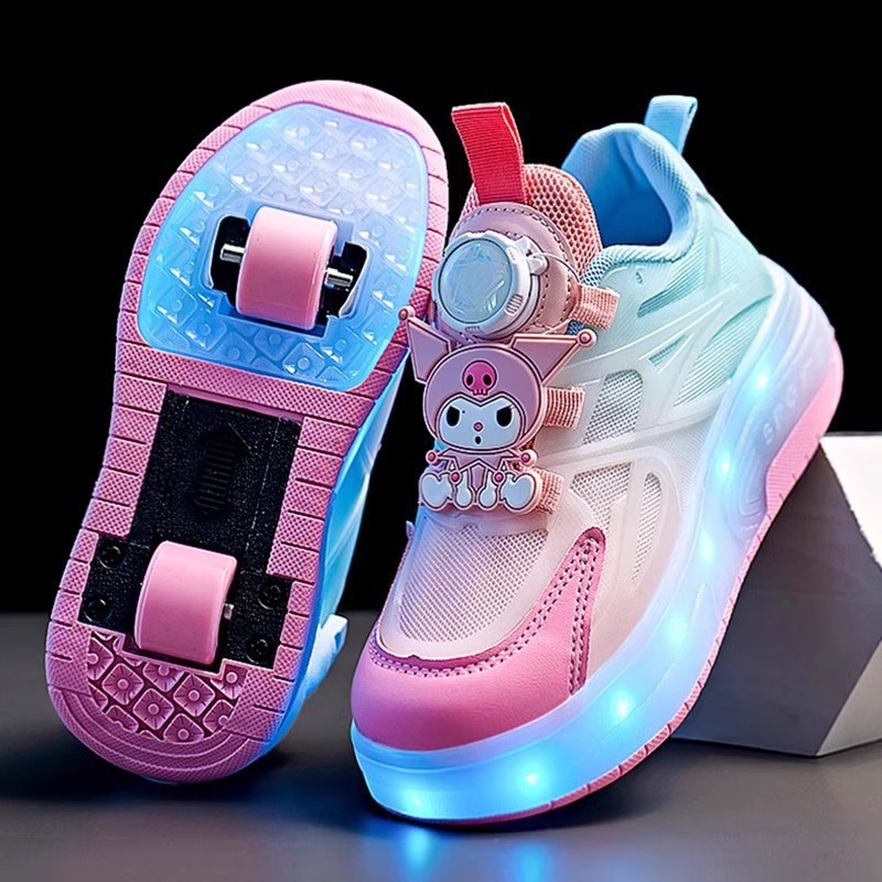 걸스 힐루 신발 봄 새로운 어린이 쿨로 미 버스트 워킹 도르래 신발 빛나는 2 륜 개폐식 소녀스토어 가기