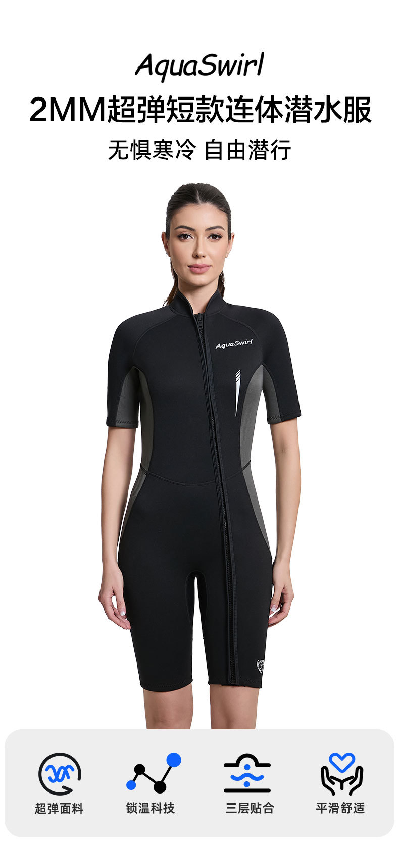 유럽의 새로운 여름 2mm 초탄성 원피스 잠수복 반팔 방한 서핑 다이빙 잠수복 여성용 해파리 슈트스토어 가기