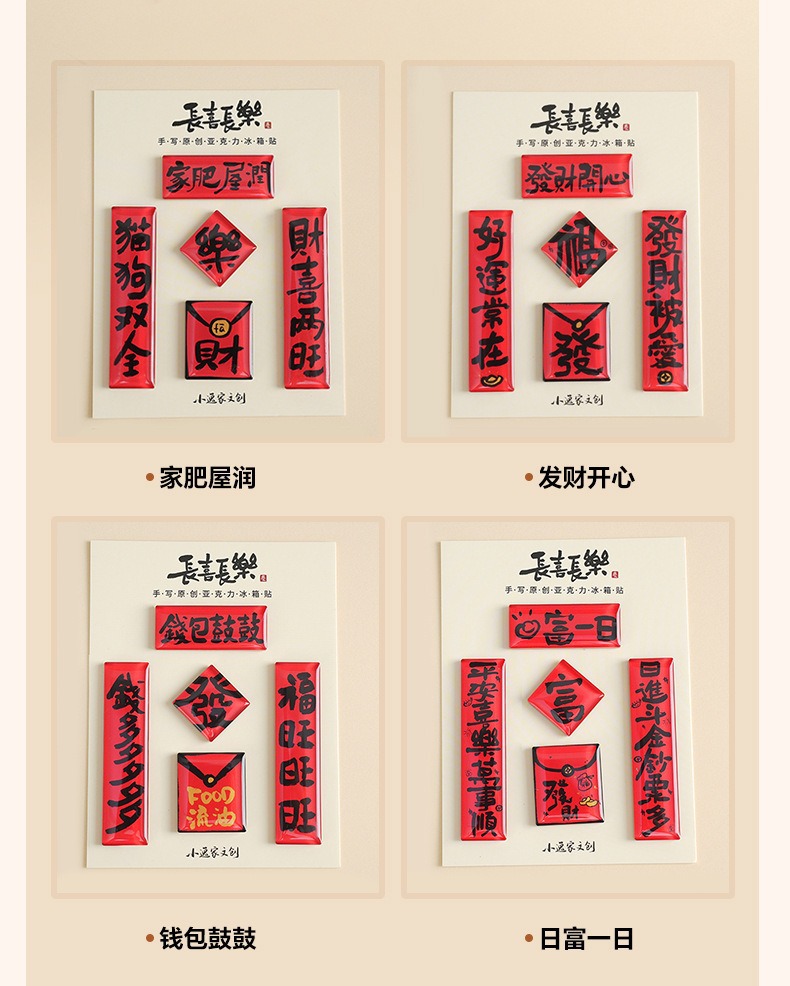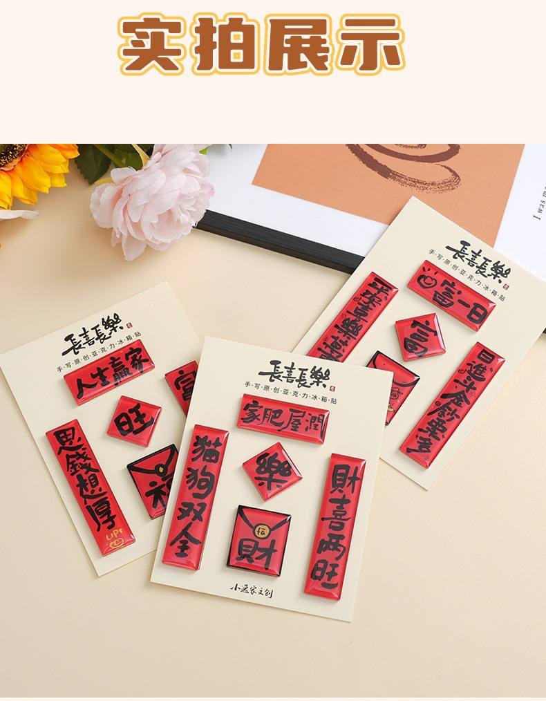 새해 전국 조수 서예 텍스트 자기 흡입 냉장고 스티커 창조적 인 작은 선물 축제 장식 재미있는 봄 축제 2025