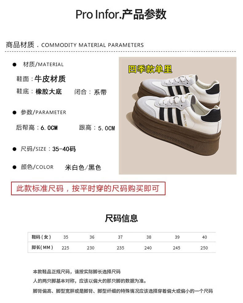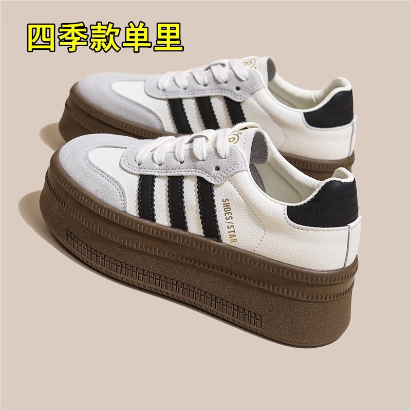 정품 가죽 독일 훈련 신발 여성의 2025 년 봄과 여름 새로운 통기성 흰색 신발 두꺼운 단독 높이 증가 신발 캐주얼 운동화