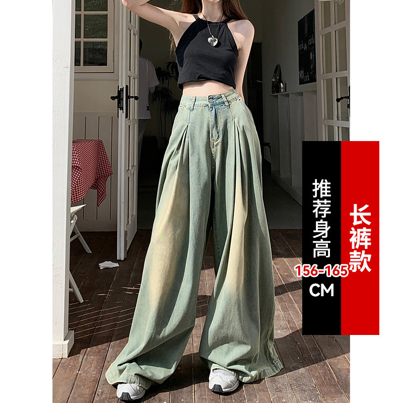 여성용 아메리칸 하이 스트리트 와이드 레그 청바지, 루즈한 여름 신상 하이웨이스트 레트로 스트레이트 팬츠, 다용도 슬리밍 바닥 길이 팬츠스토어 가기