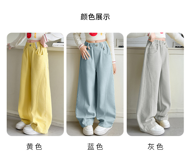 소녀 봄 가을 데님 마체테 바지 2025 새로운 패션 소녀 한국 스타일 캔디 컬러 바지스토어 가기