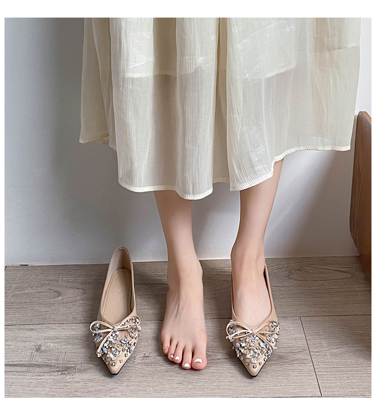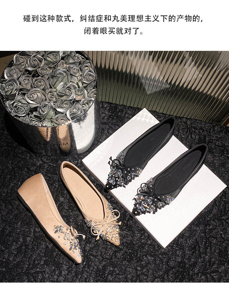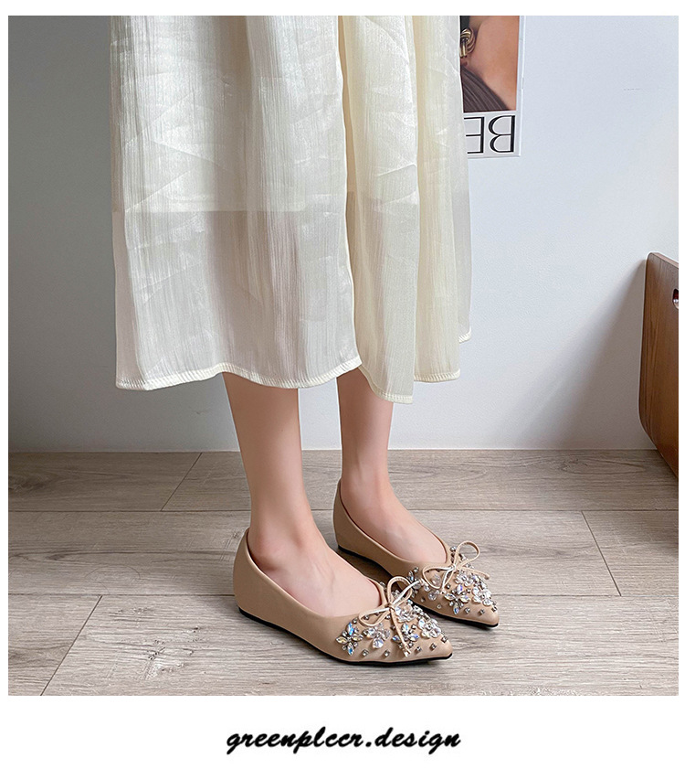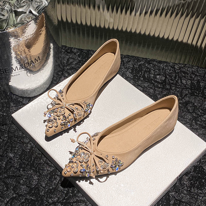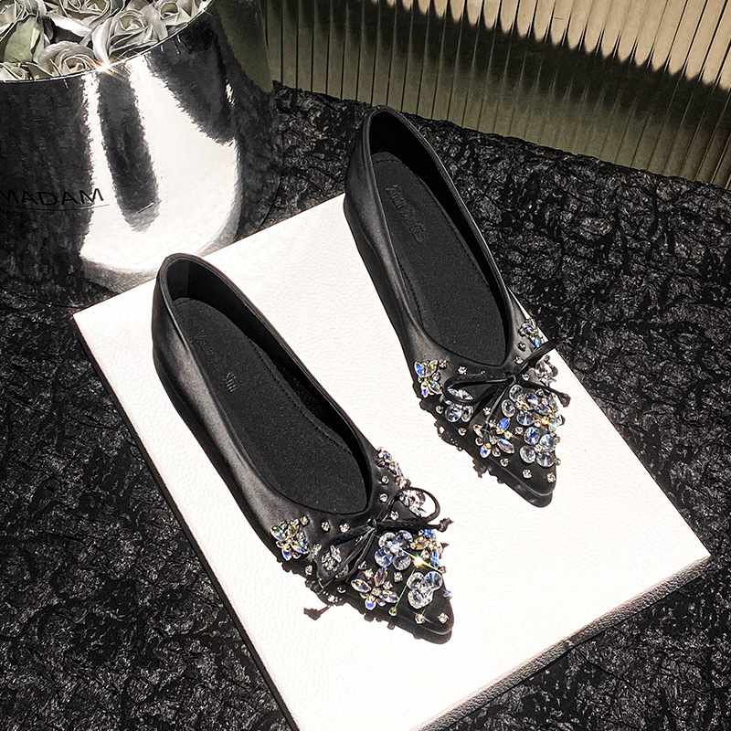 2025 년 새 한국판 뾰족한 활 모조 다이아몬드 여성 신발 조커 국자 신발 플러스 사이즈 여성 신발 41-43스토어 가기