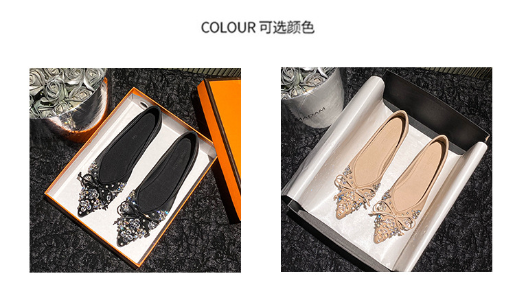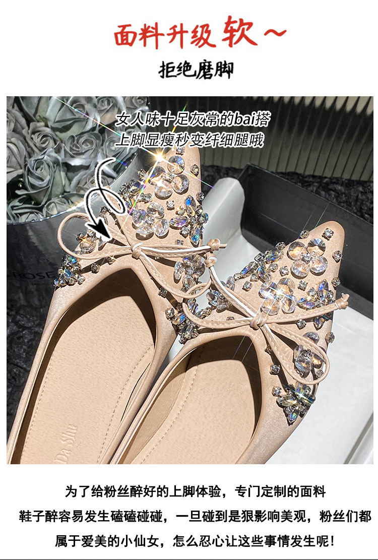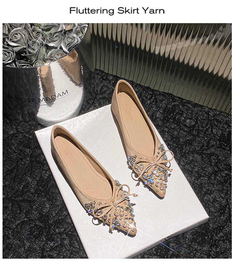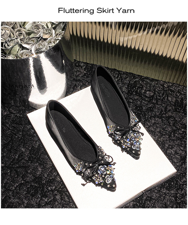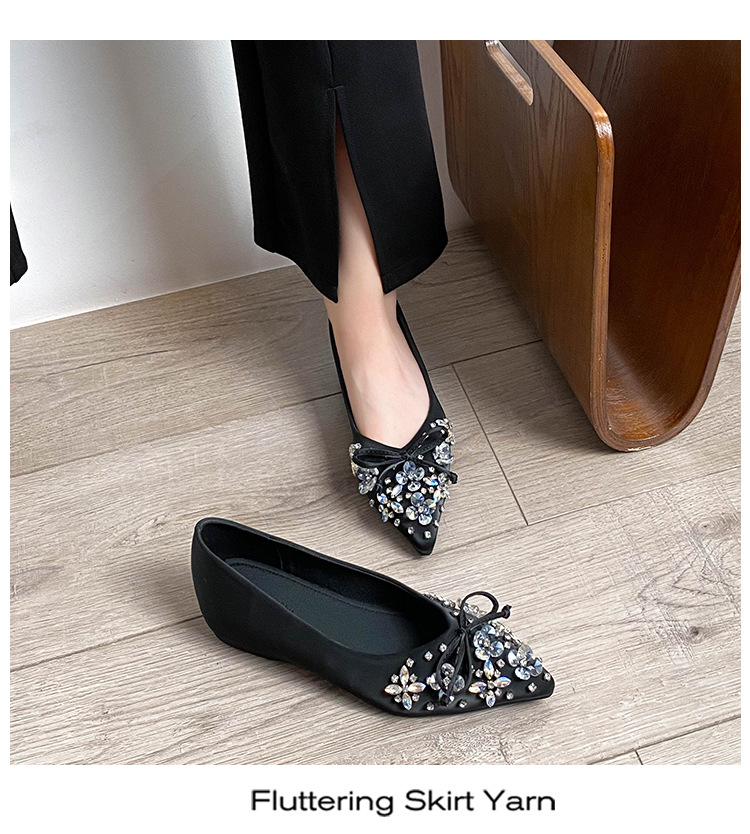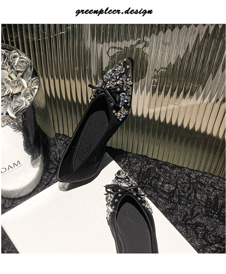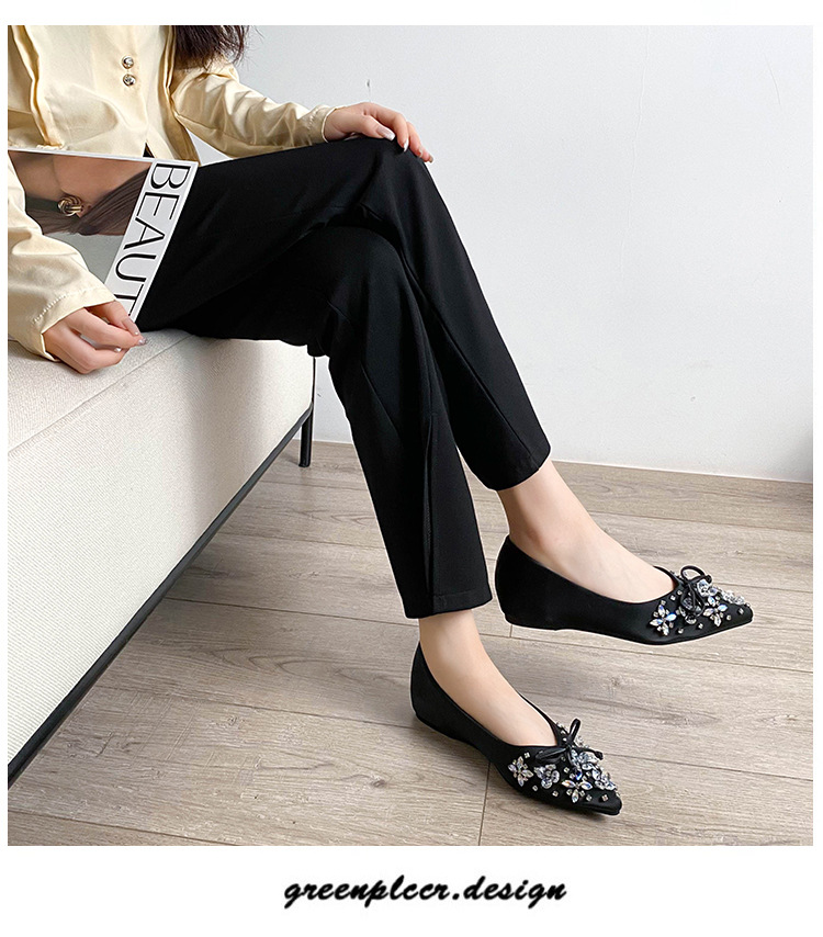 2025 년 새 한국판 뾰족한 활 모조 다이아몬드 여성 신발 조커 국자 신발 플러스 사이즈 여성 신발 41-43