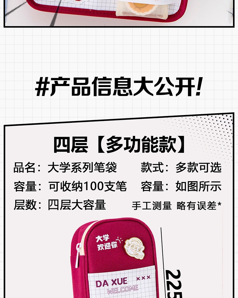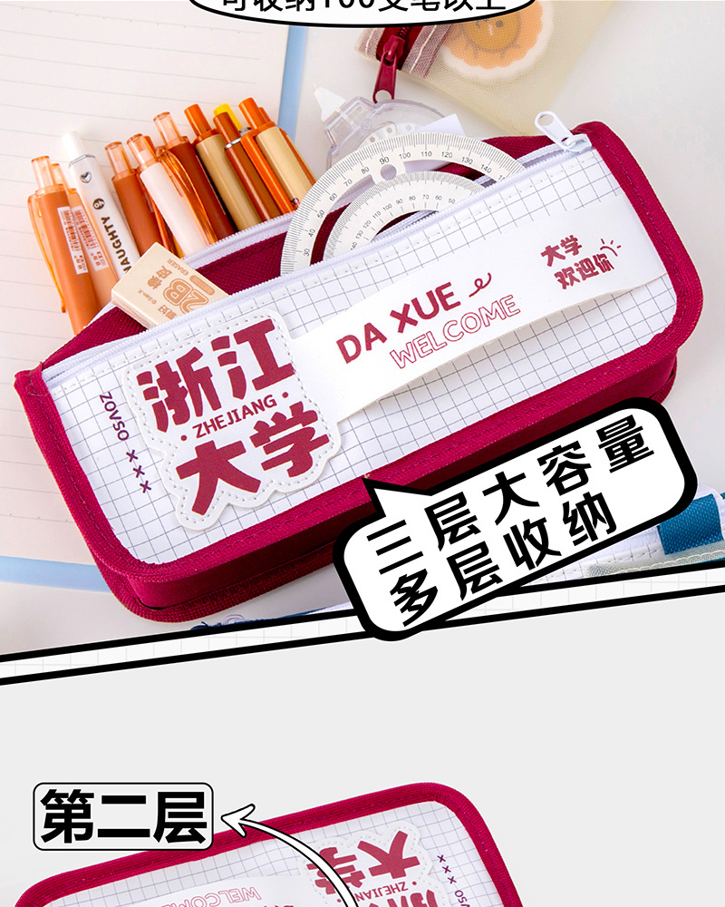 대학 시리즈 연필 가방 영감 고등학교 중학교 초등학교 문구 가방 소년 소녀 다층 대용량 연필 케이스