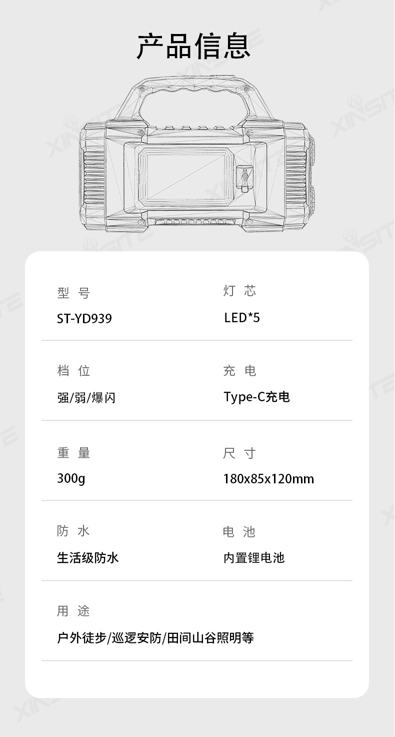 야외 멀티 엔지니어링 휴대용 램프 태양 충전 내구성 휴대용 방수 캠핑 하이킹 야간 낚시 수리 램프
