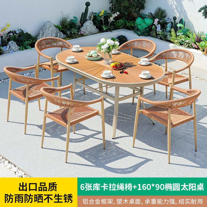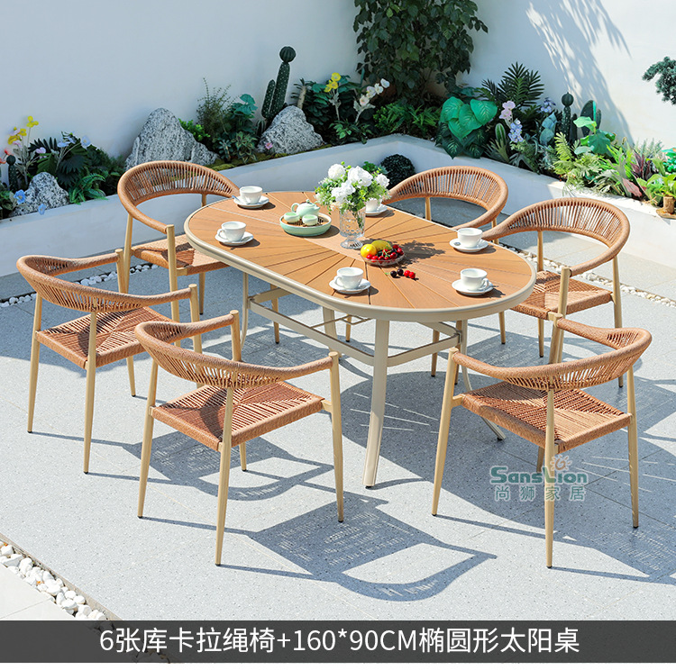 • 160cm 타원형 태양 테이블 + 쿠카라 로프 의자 6개