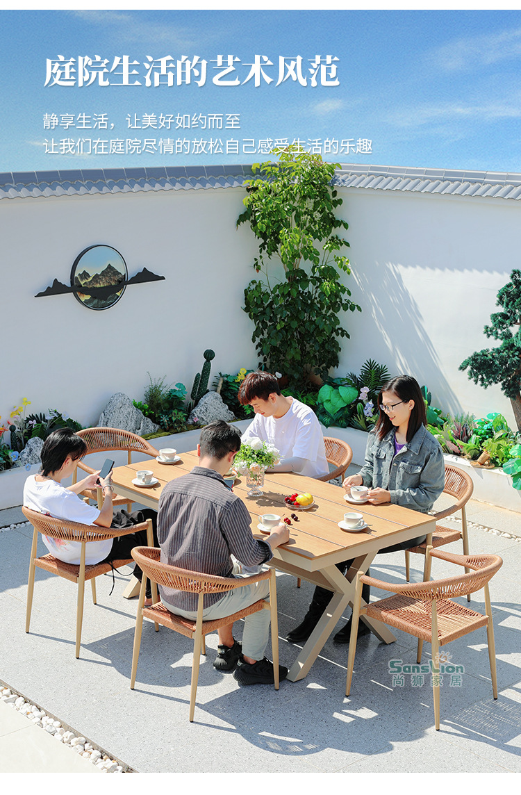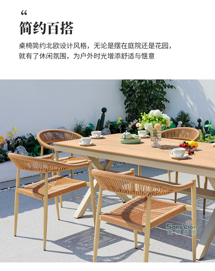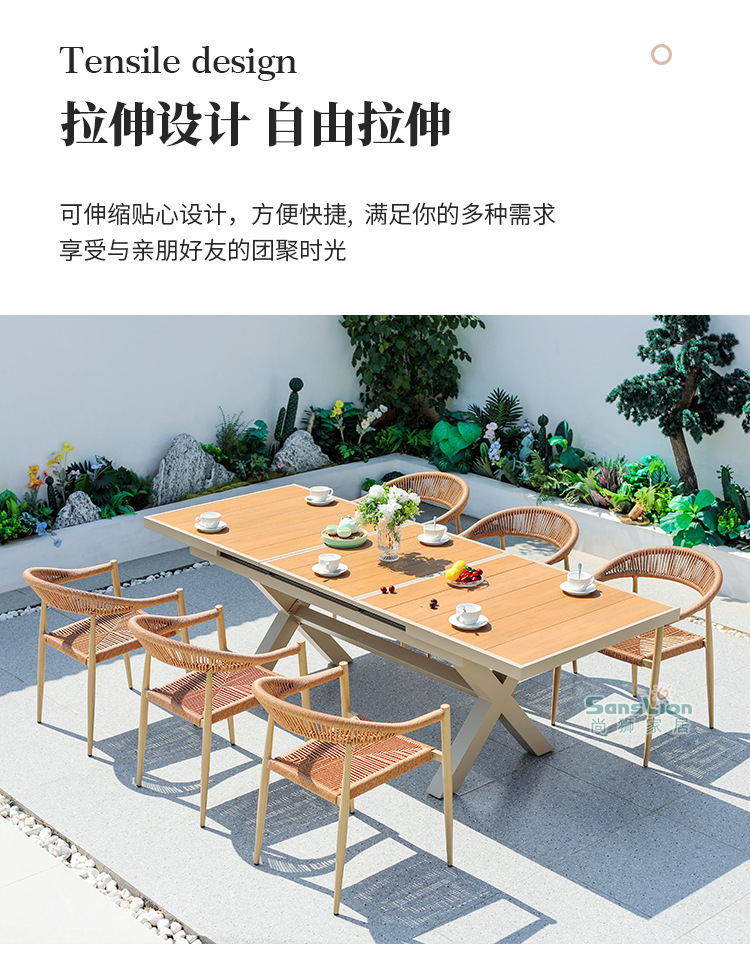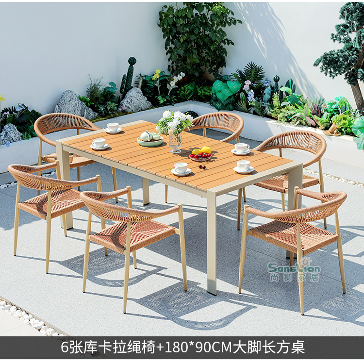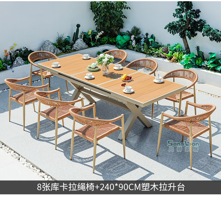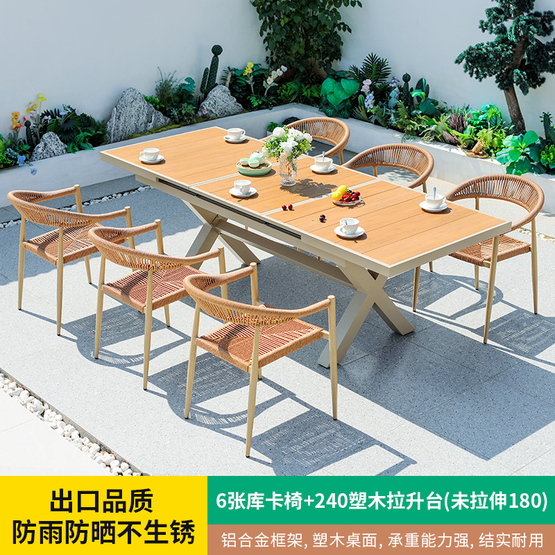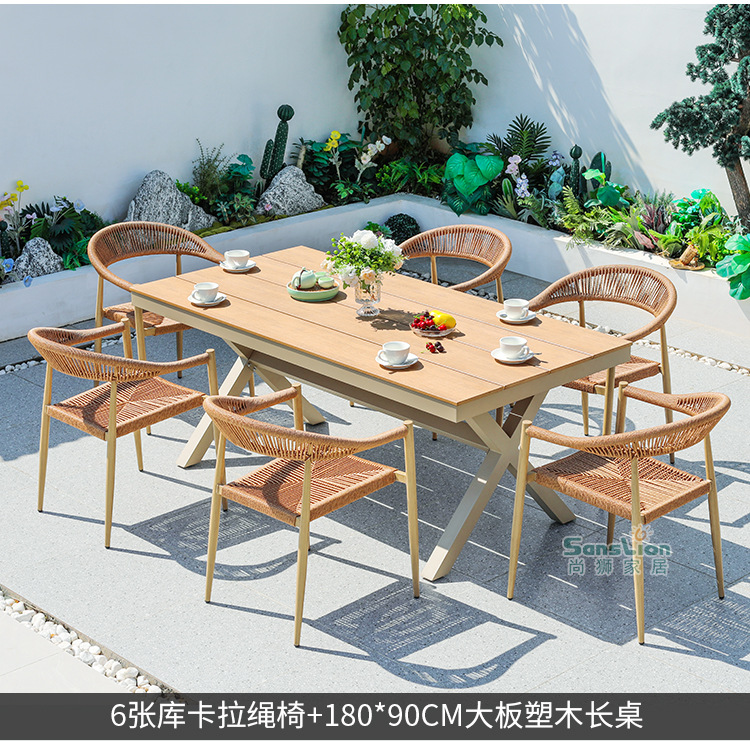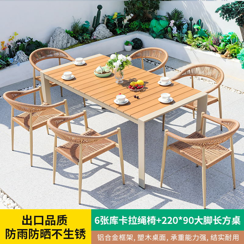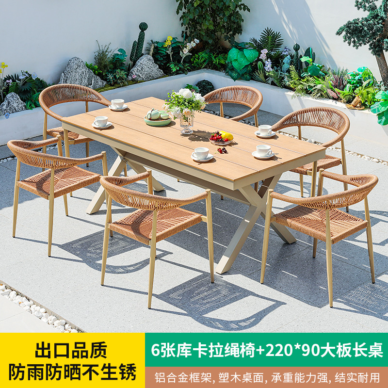 • 240cm 플라스틱 목재 스트레치 롱 테이블 + 쿠카라 로프 의자 6개