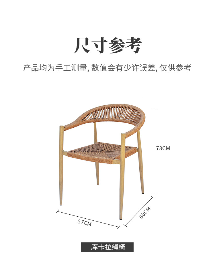• 60개의 둥근 작은 네발톱 기둥 테이블 + 쿠카라 로프 의자 2개