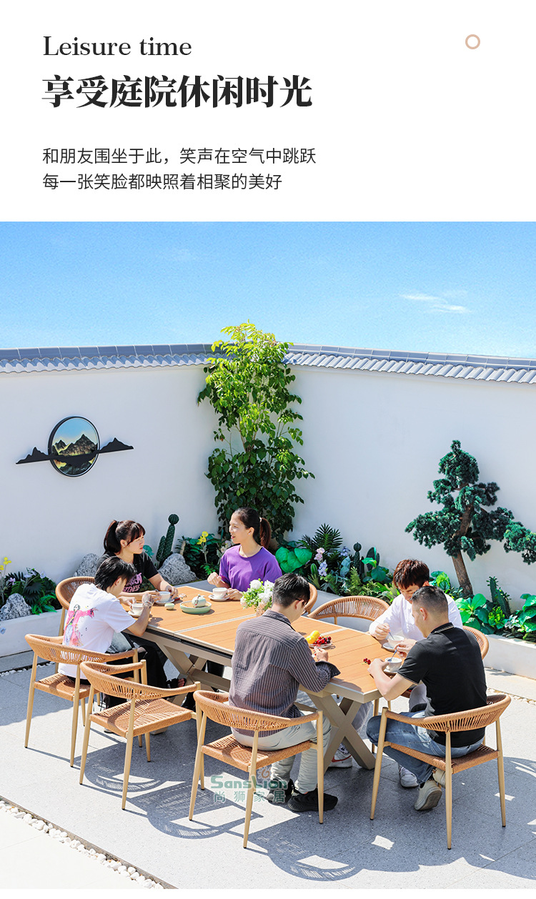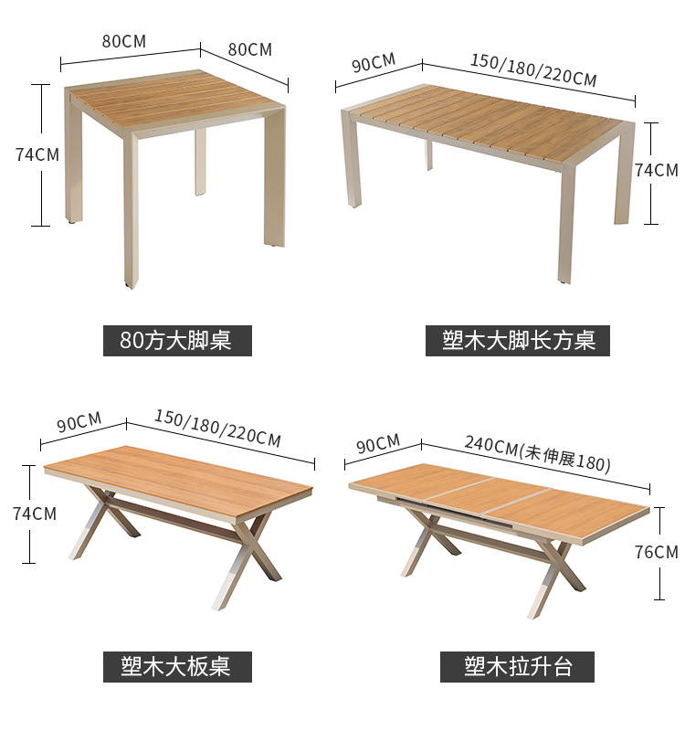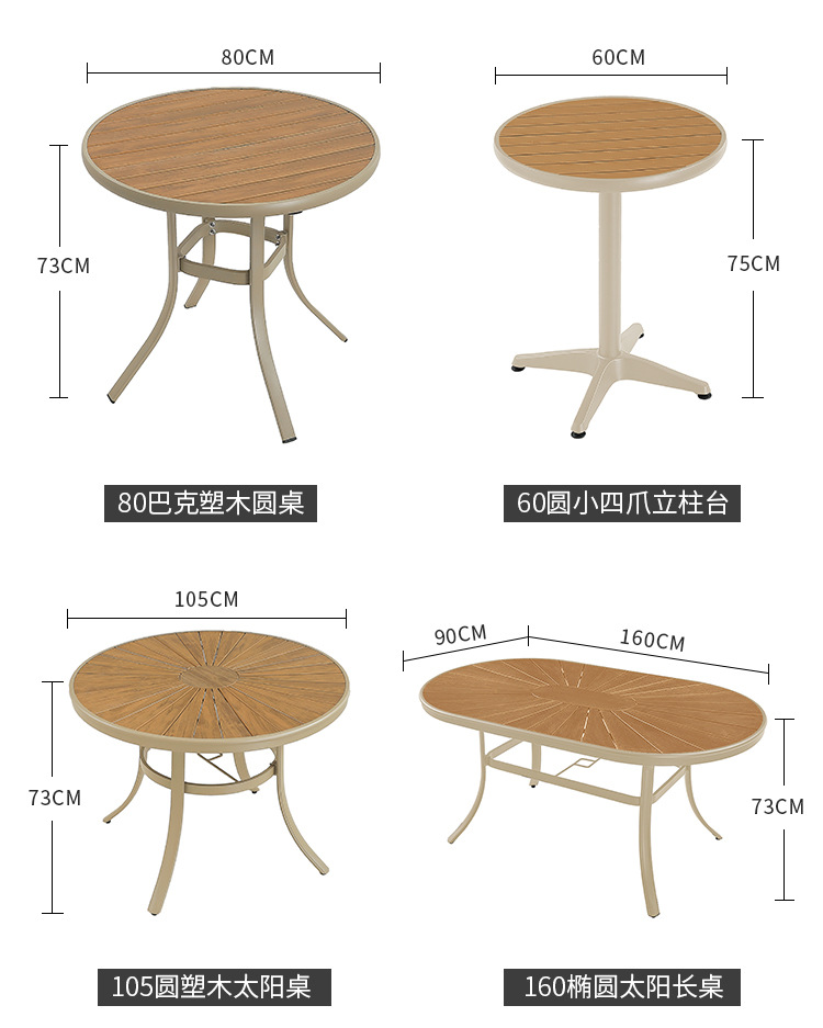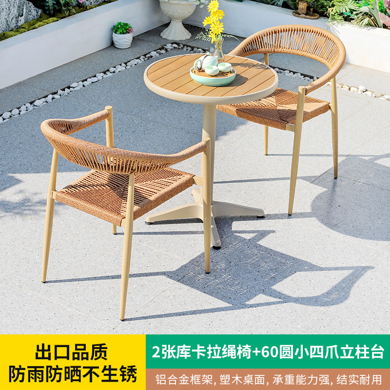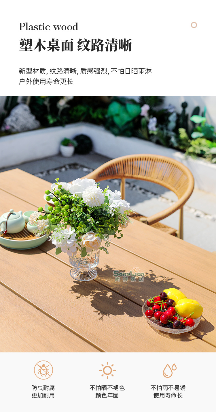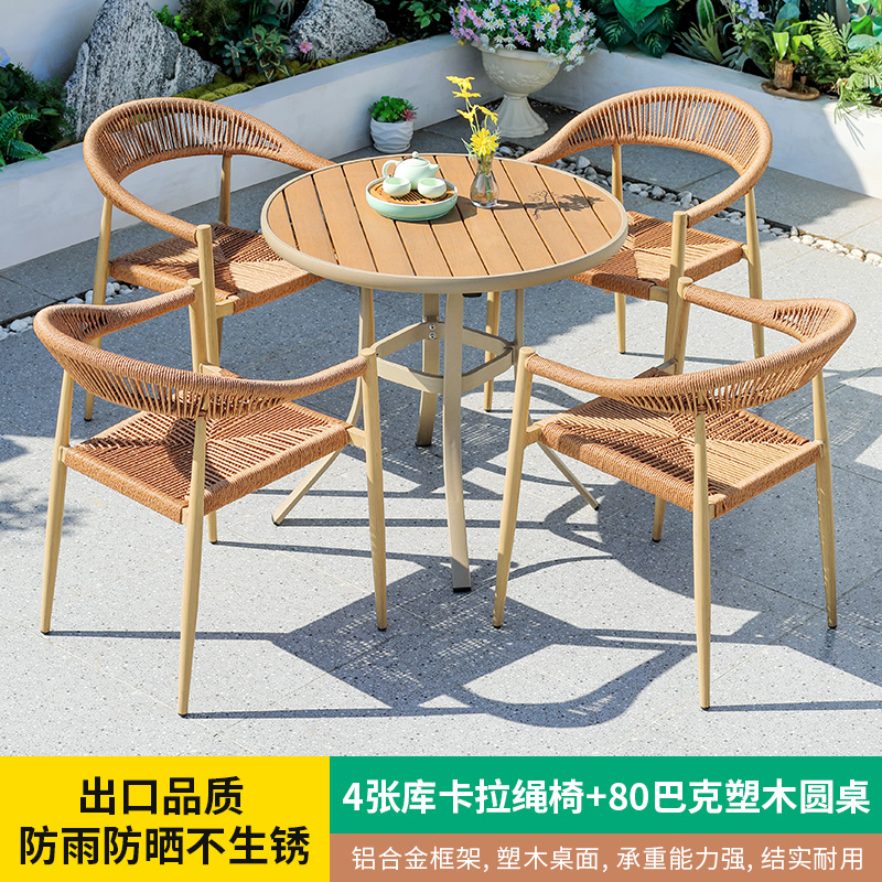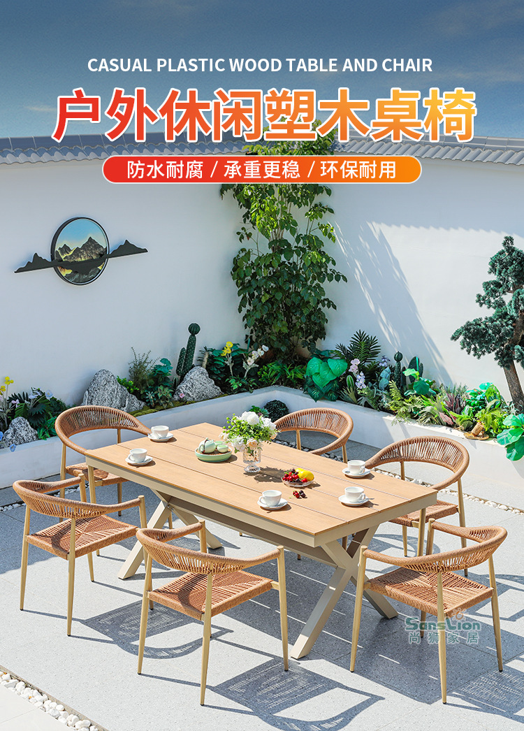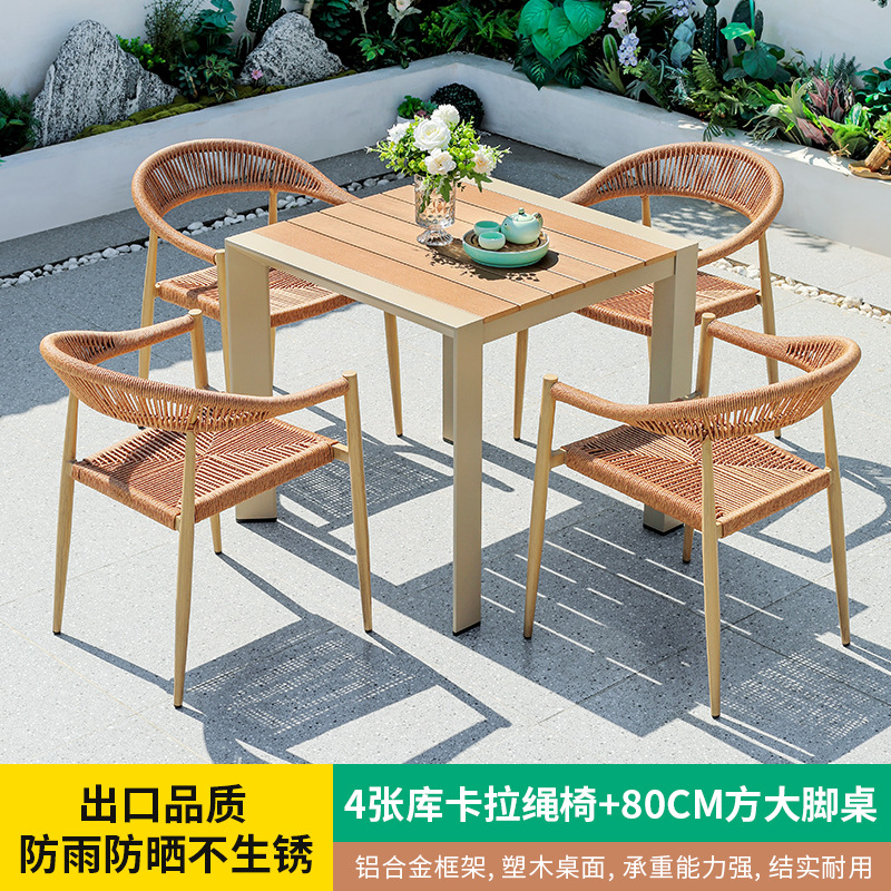 야외 테이블 및 의자 엔지니어링 야외 플라스틱 나무 광장 안뜰 테이블 및 의자 간단한 레저 방수 부식 방지 경치 좋은 발코니 및 의자
