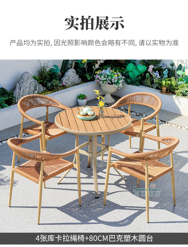 • 80벅 플라스틱 나무 원형 테이블 + 쿠카라 로프 의자 4개