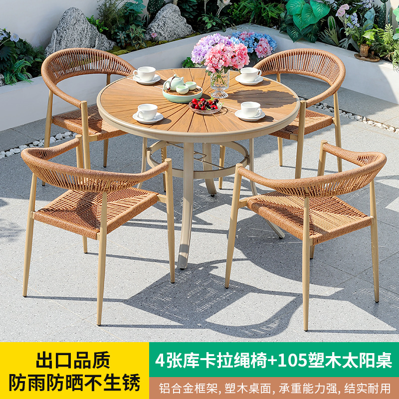 • 105개의 태양 플라스틱 나무 원형 테이블 + 쿠카라 로프 의자 4개