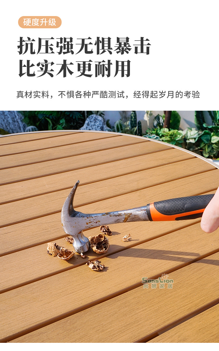 야외 테이블 및 의자 엔지니어링 야외 플라스틱 나무 광장 안뜰 테이블 및 의자 간단한 레저 방수 부식 방지 경치 좋은 발코니 및 의자스토어 가기