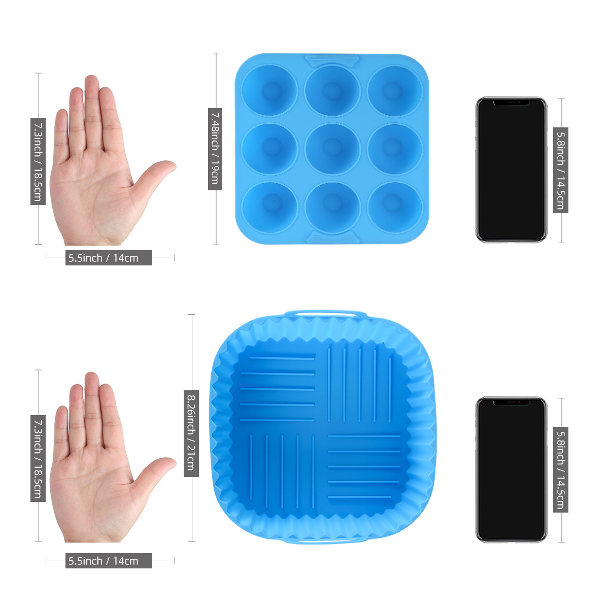 사각 에어 프라이어 실리콘 베이킹 팬 세트 식품 등급 베이킹 케이크 고온 방지 사각 붙지 않는 디저트
