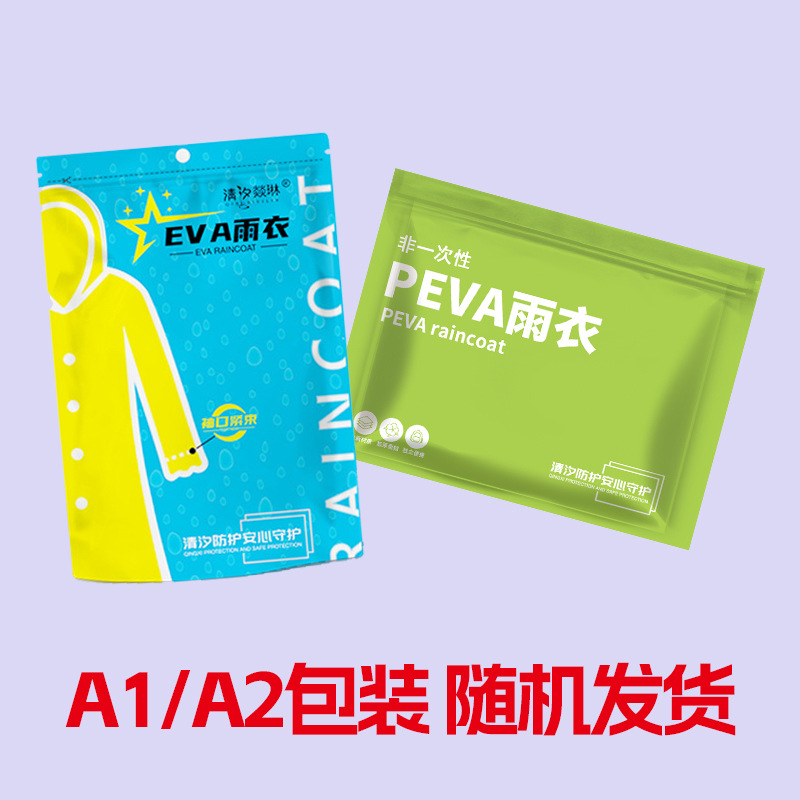 일회용이 아닌 비옷, 길고 두꺼운 PEVA 레인코트, 휴대용 개별 포장, 성인 및 어린이용 야외 일체형 레인코트