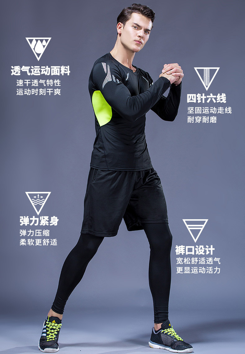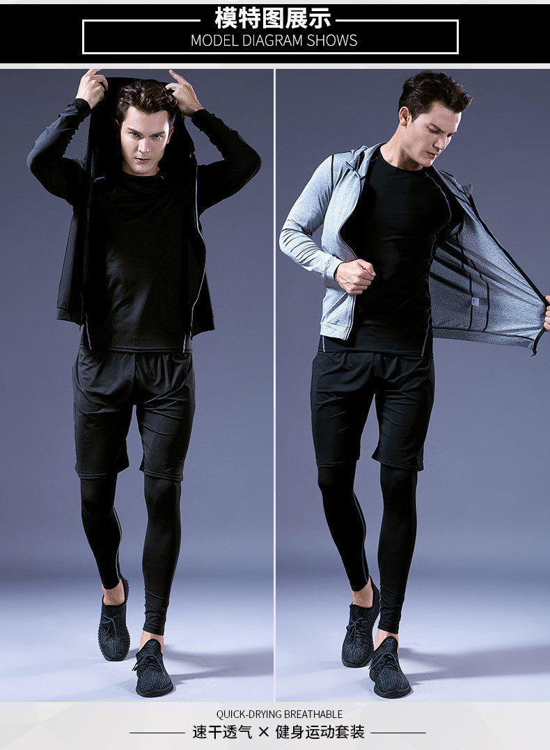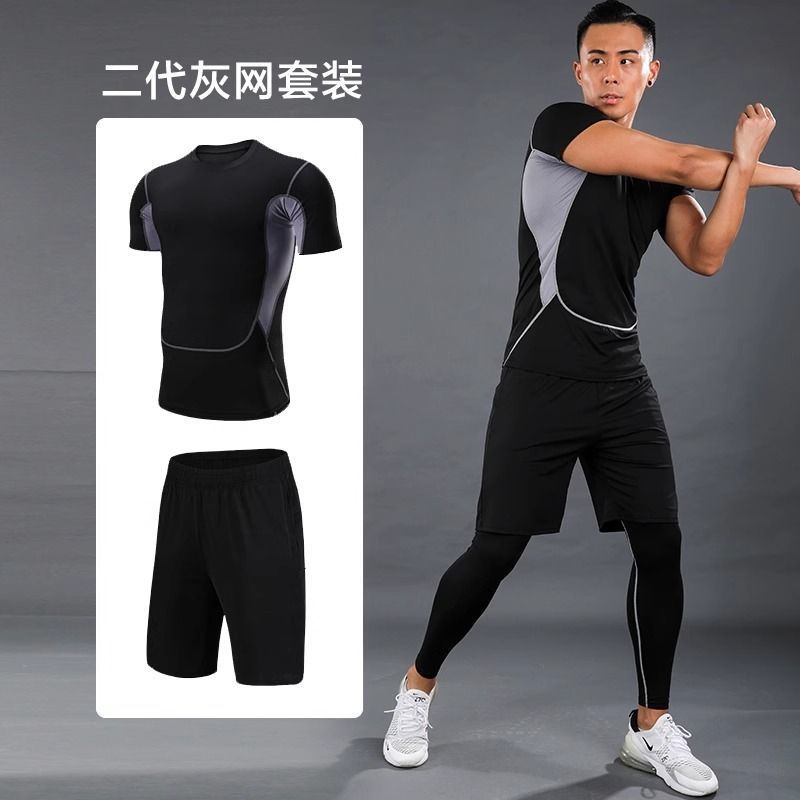 피트니스 의류 새로운 스포츠 세트 남자 빠른 드라이 의류 달리기 농구 꽉 옷 아침 달리기 체육관 남자 훈련 옷스토어 가기