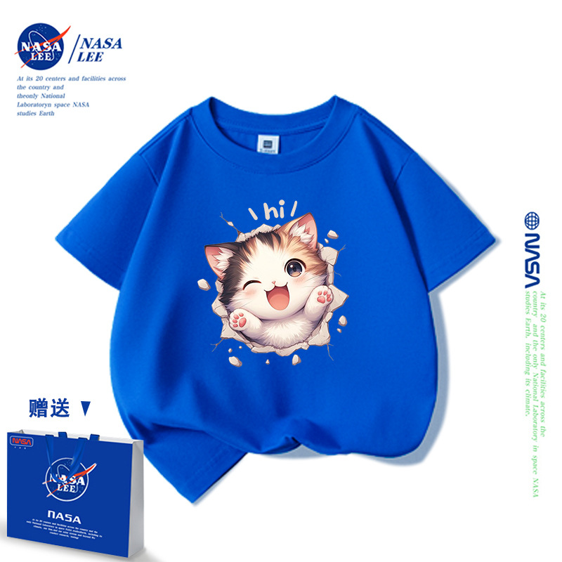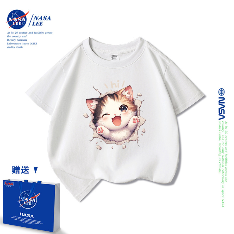 NASA 어린이 짧은 소매 티셔츠 얇은 어린이 여름 원피스 소년 2025 새로운 퓨어 코튼 블랙 걸스 톱 도매스토어 가기