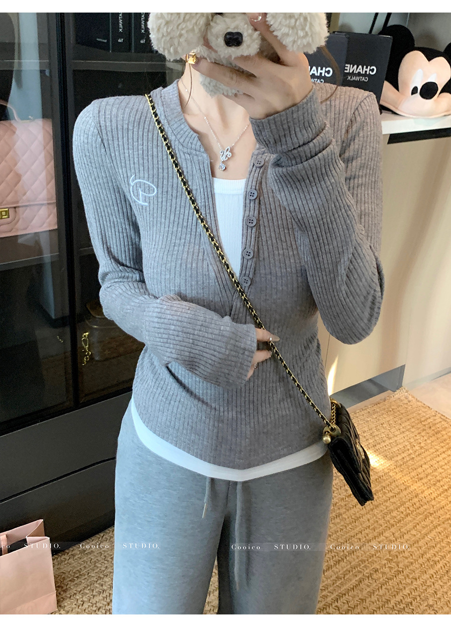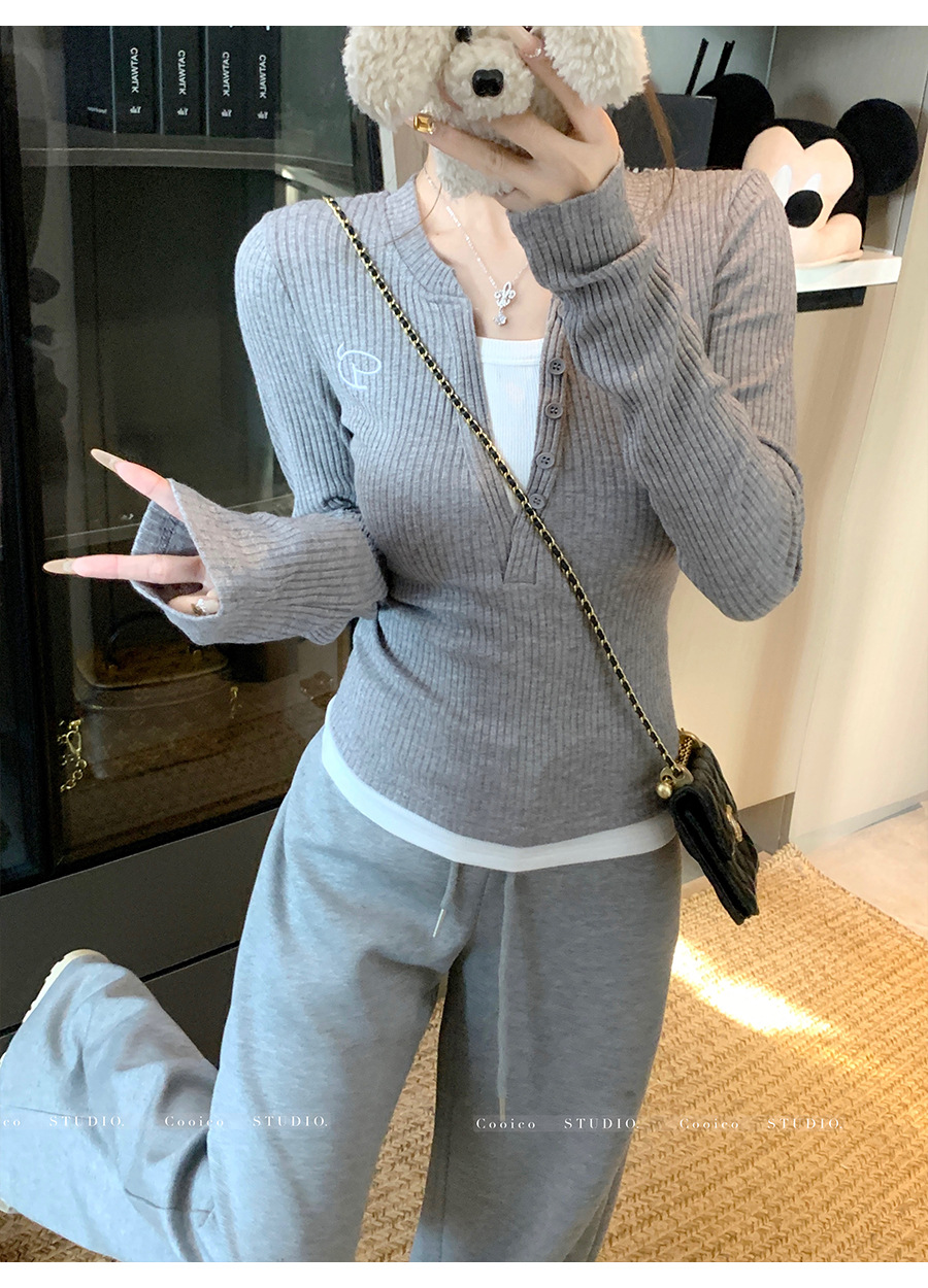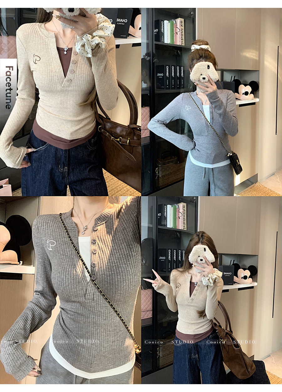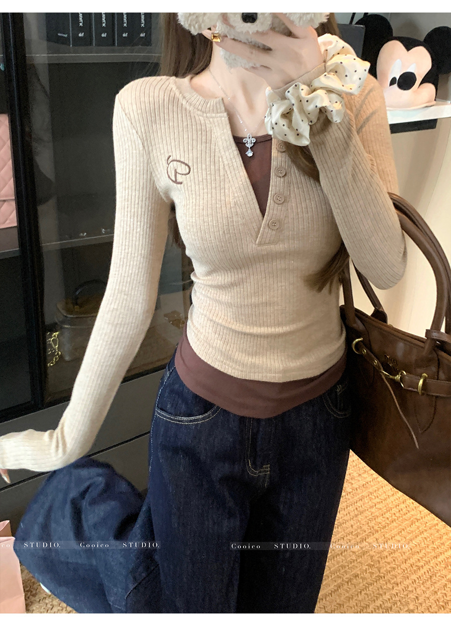 미국 레트로 스타일 배색 투피스 롱슬리브 티셔츠 여성용 봄 신상 슬림핏 숏탑