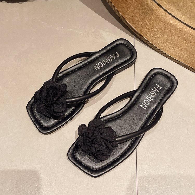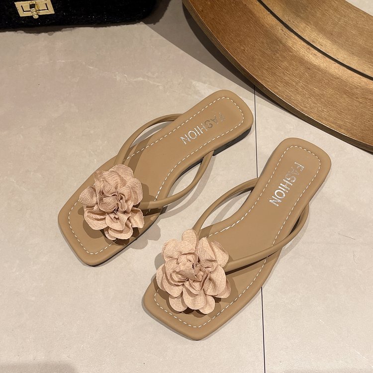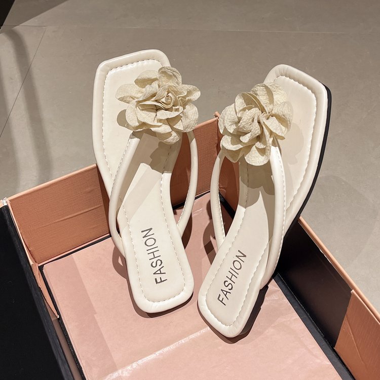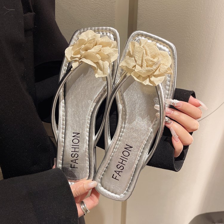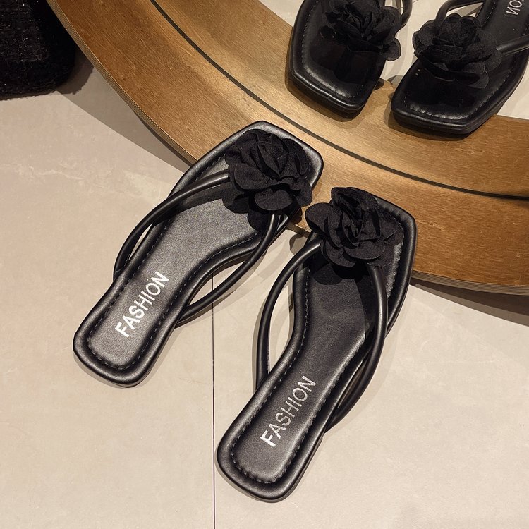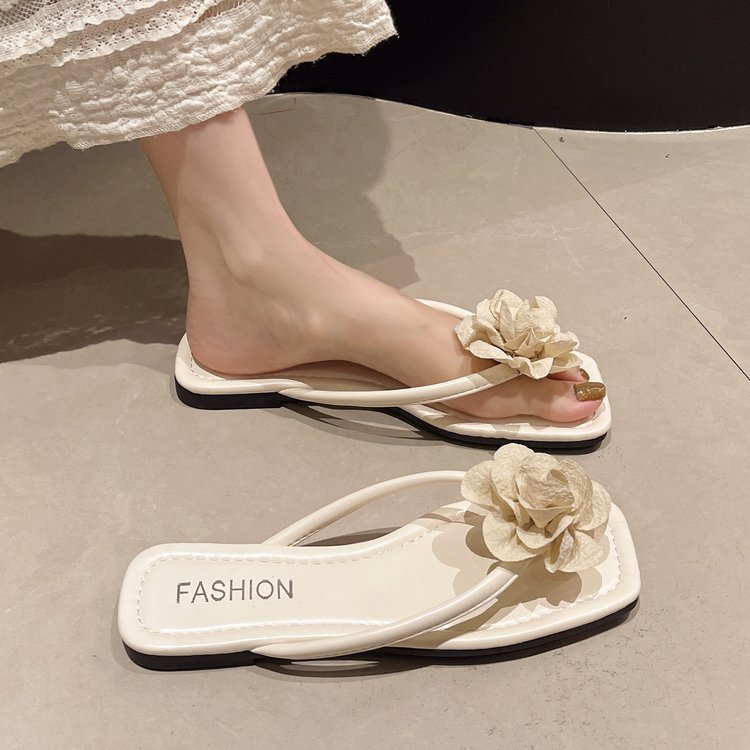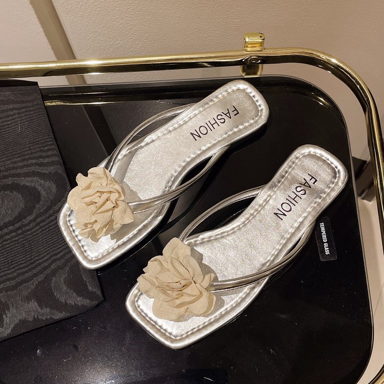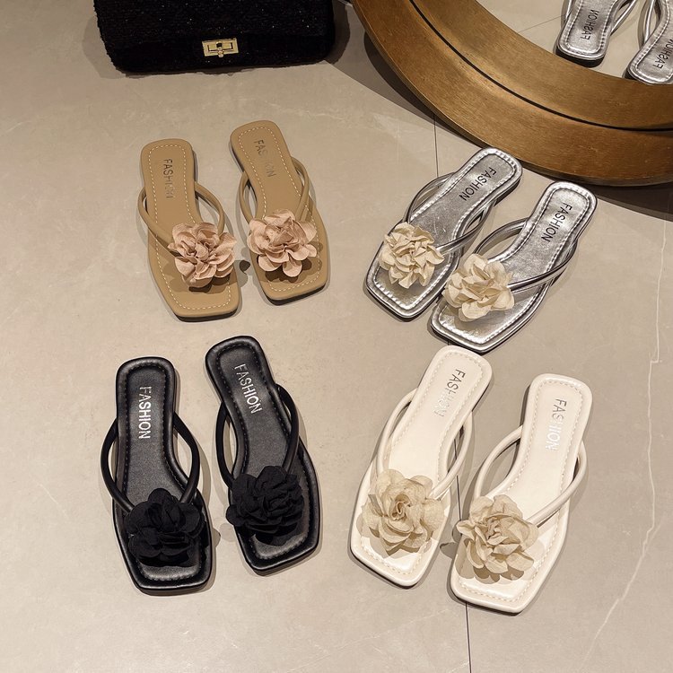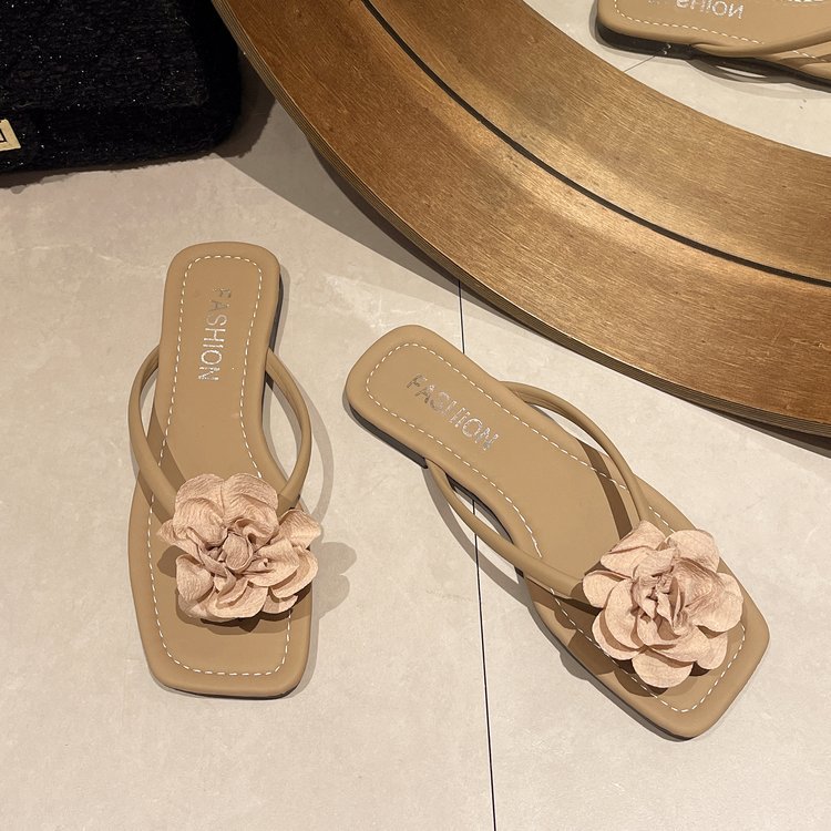 2025 봄과 여름 새로운 플랫 힐 슬리퍼 여성 요정 스타일 플립 플롭 패션 꽃 헤링본 샌들