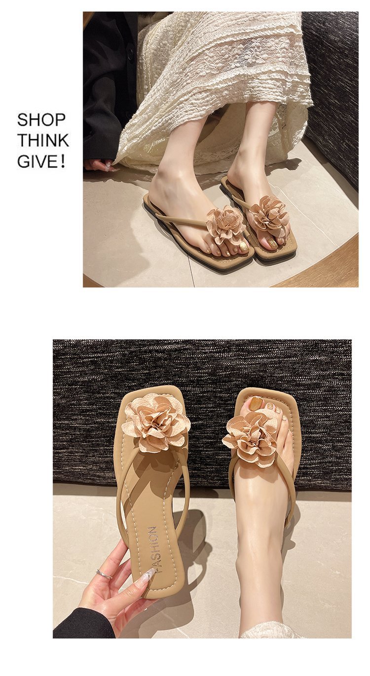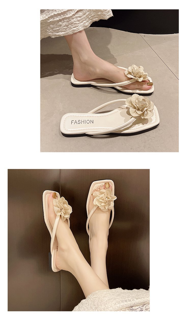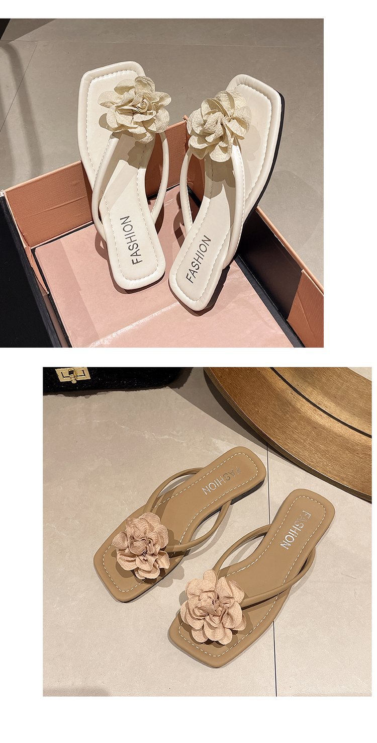 2025 봄과 여름 새로운 플랫 힐 슬리퍼 여성 요정 스타일 플립 플롭 패션 꽃 헤링본 샌들스토어 가기