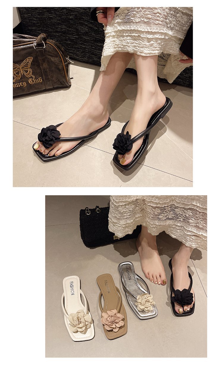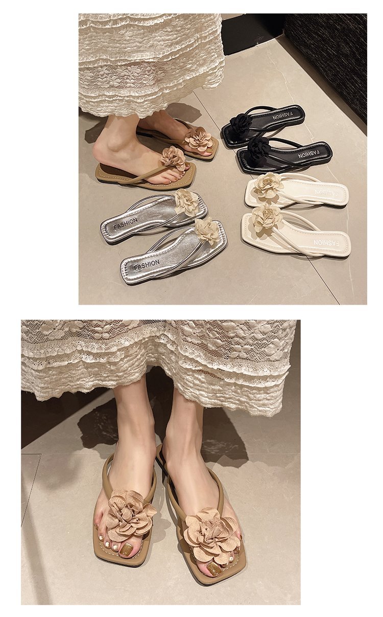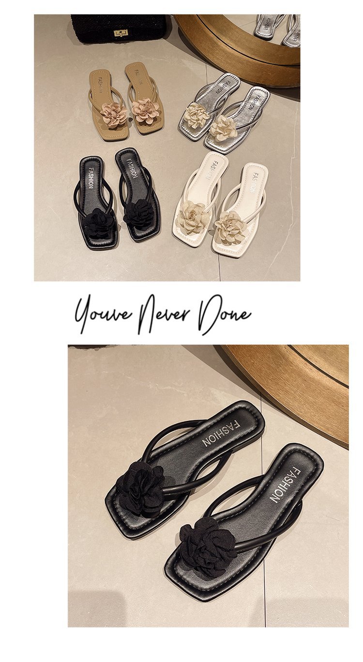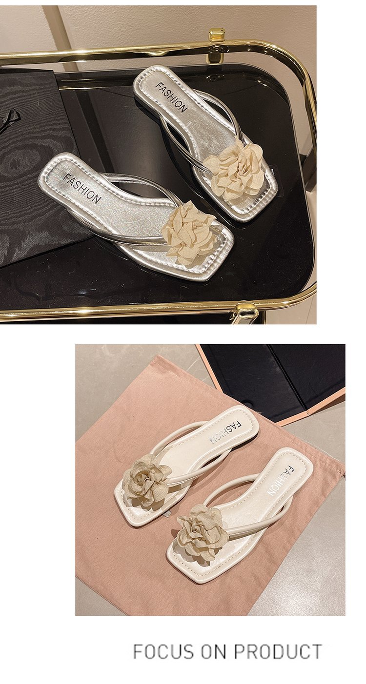 2025 봄과 여름 새로운 플랫 힐 슬리퍼 여성 요정 스타일 플립 플롭 패션 꽃 헤링본 샌들스토어 가기