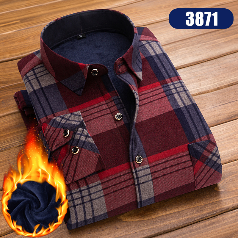 도매 가격 가을, 겨울 벨벳 두꺼운 격자 무늬 긴팔 셔츠 남성 아빠 따뜻한 남성 중년 및 노인 셔츠스토어 가기