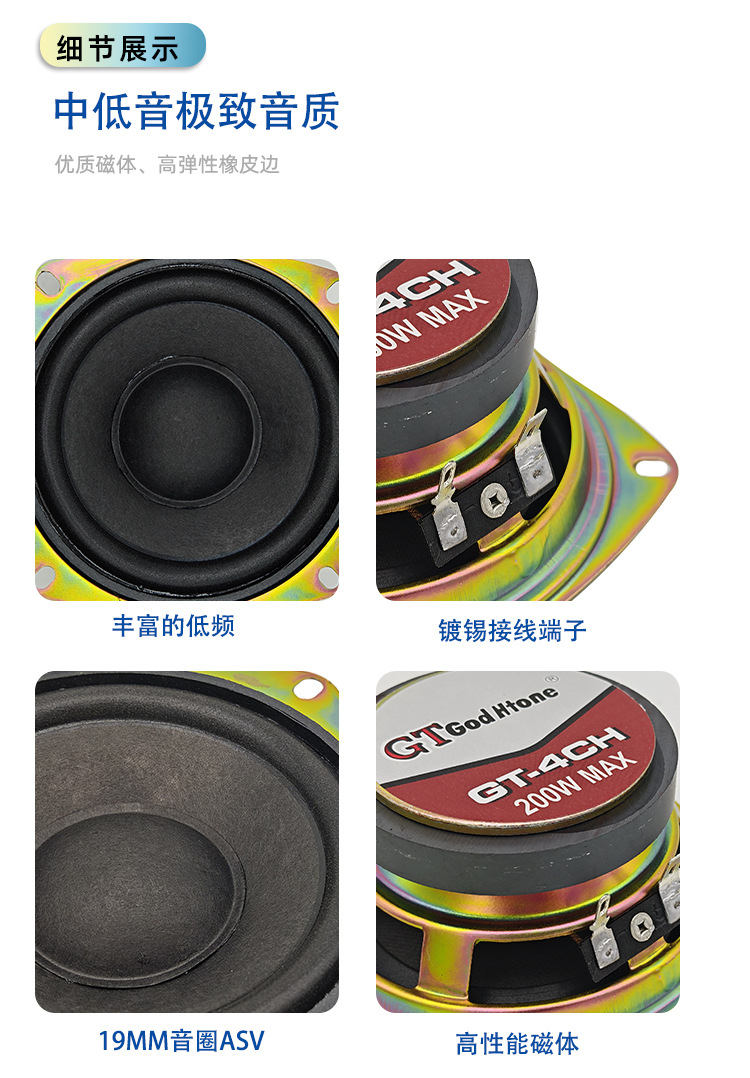 공장 직접 공급 19MM 음성 코일 고출력 200W 중간 우퍼 70 자기 4 인치 자동차 오디오 스피커