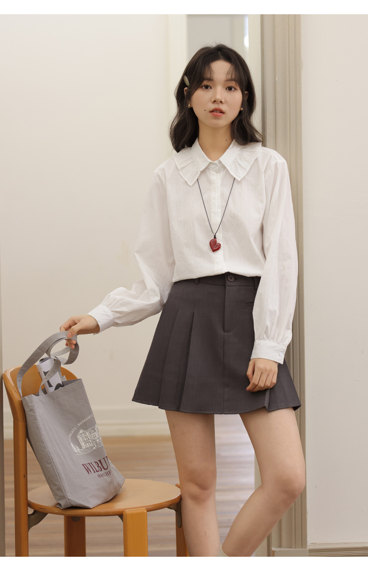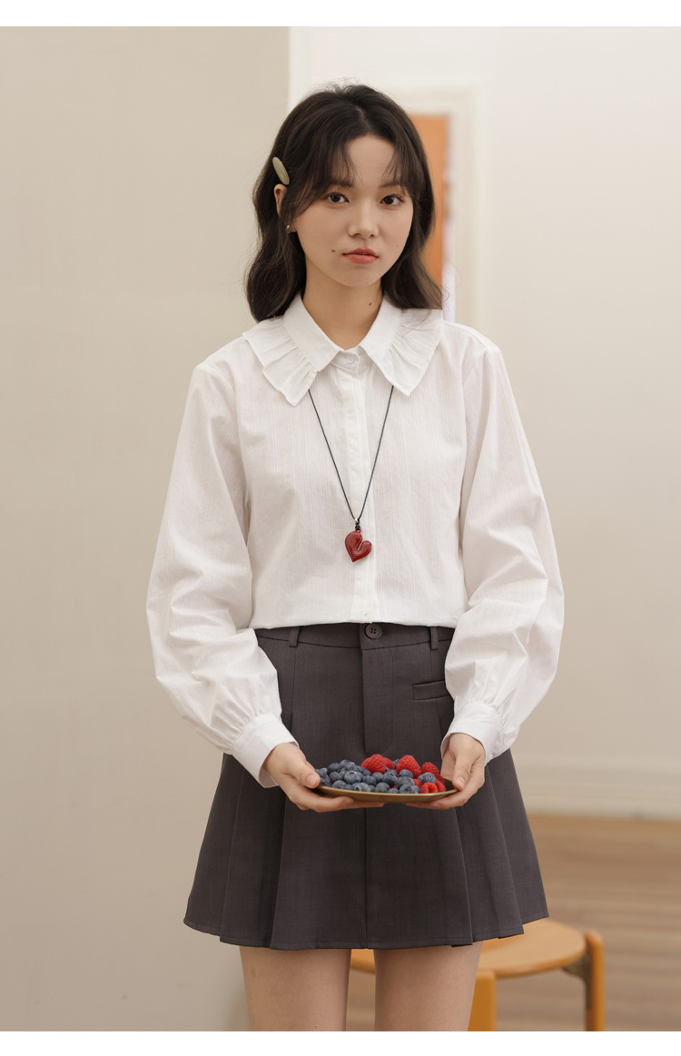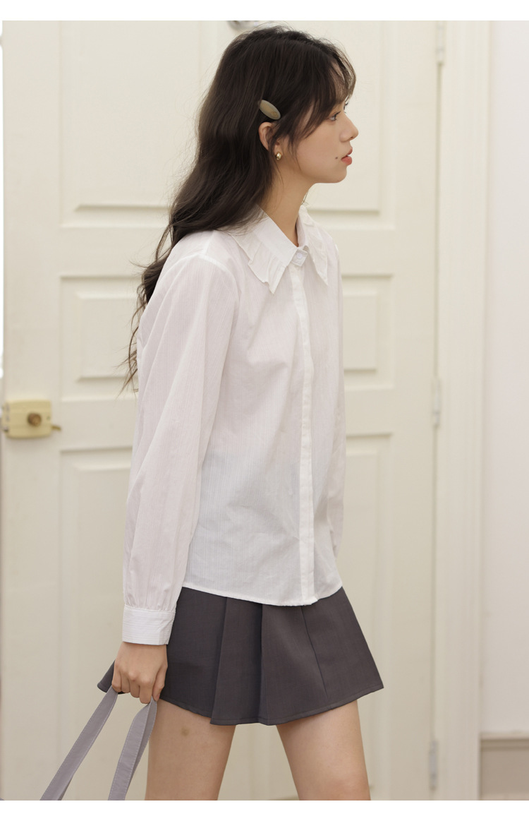 봄 2025 새로운 한국 스타일 달콤한 하이 퀄리티 자카드 디자인 여성을위한 로터스 칼라 긴 소매 셔츠와 연령 감소 탑