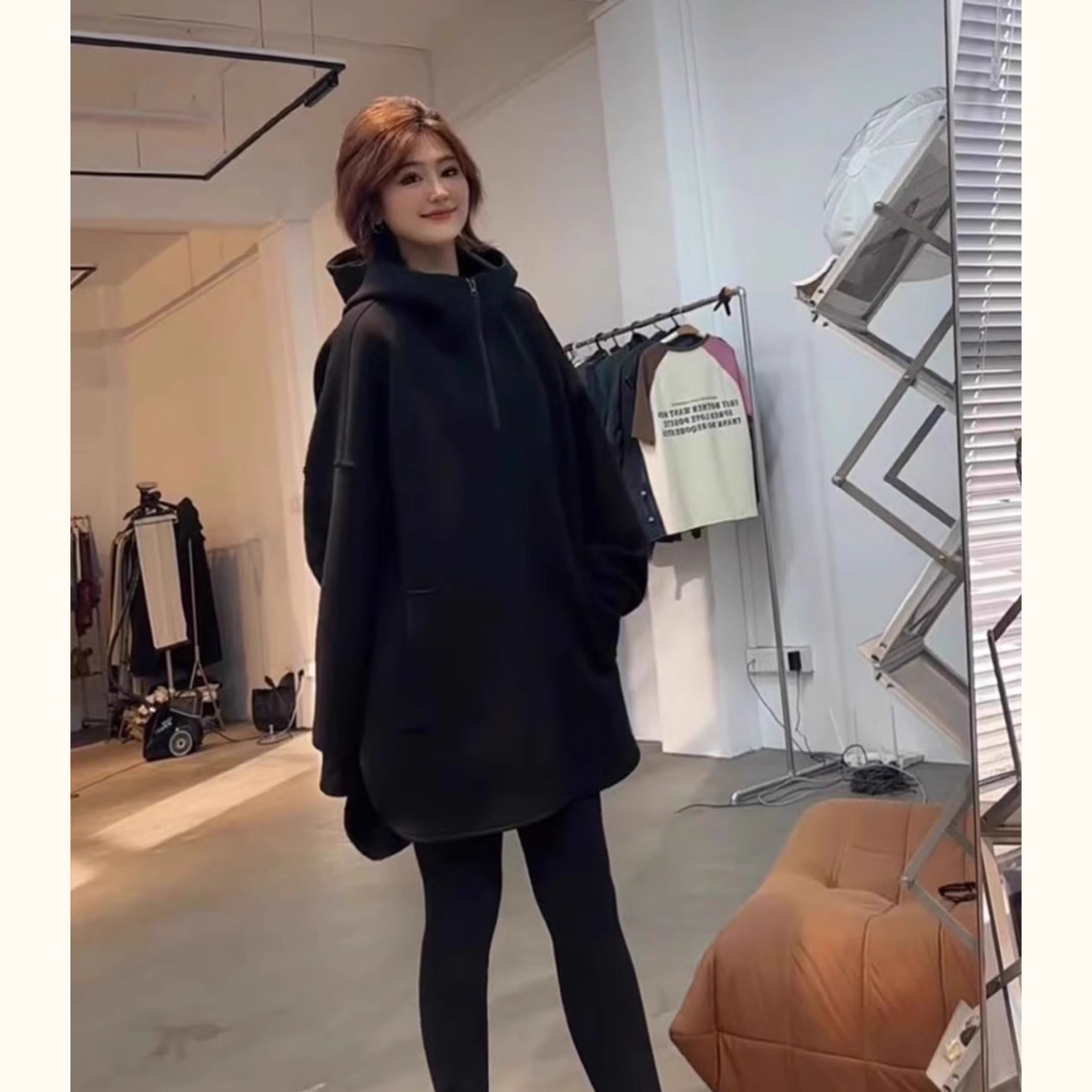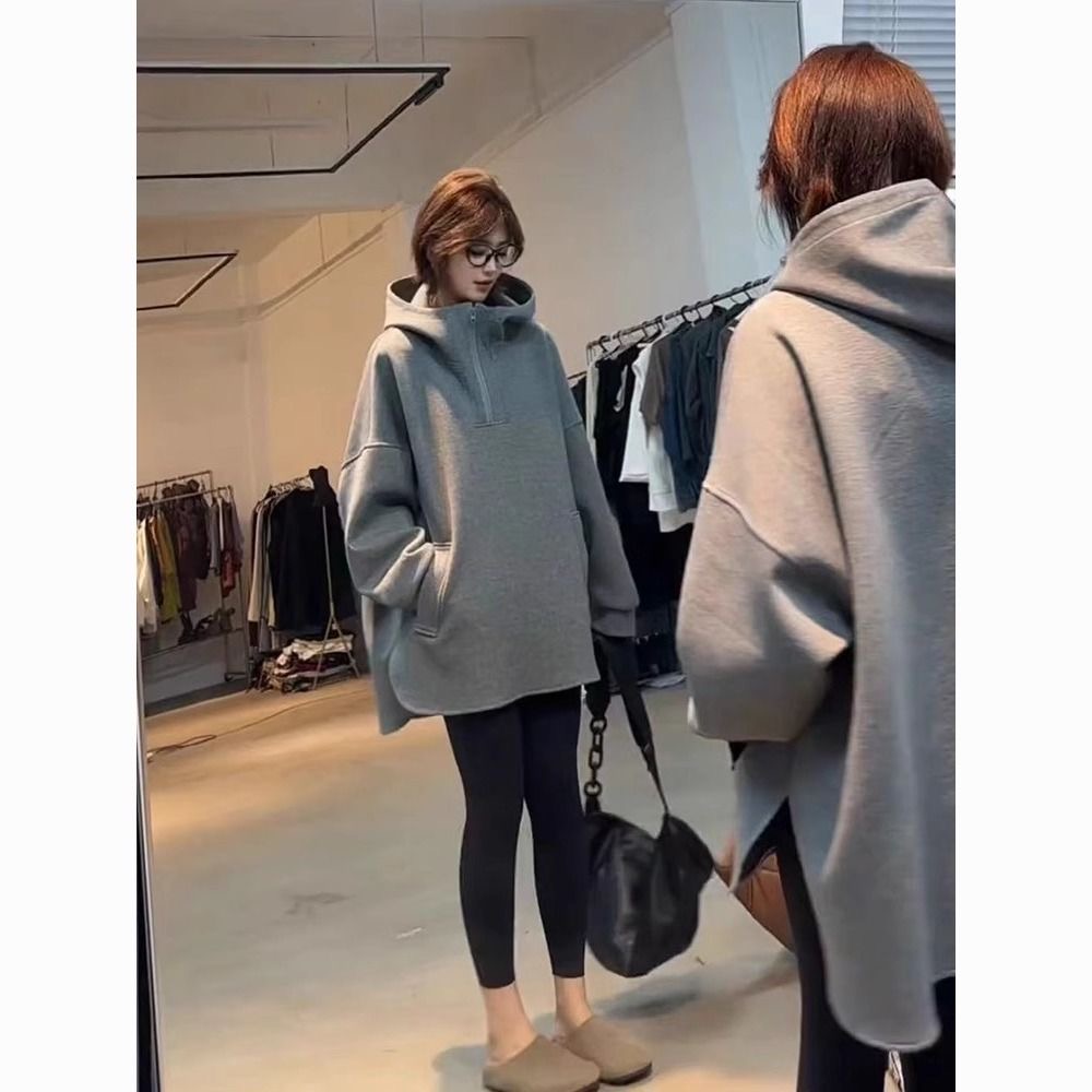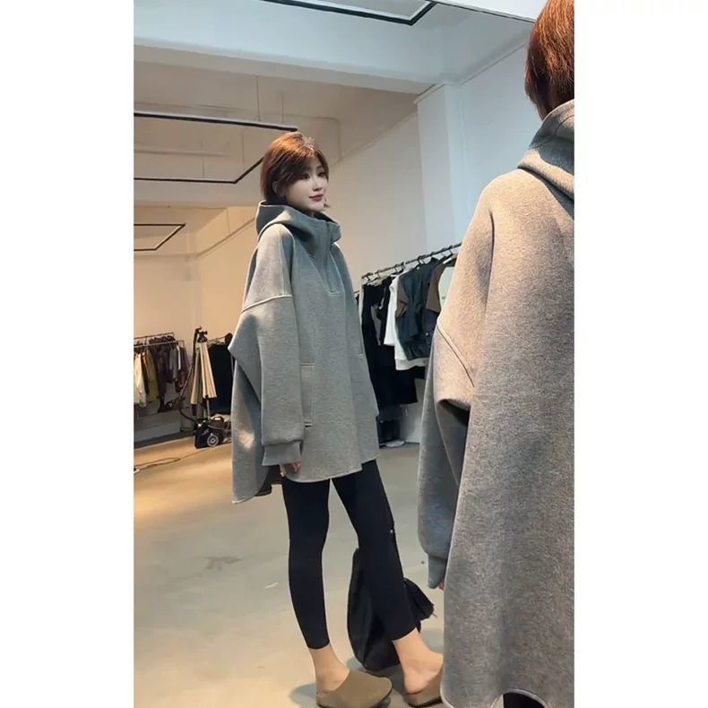 플러스 사이즈 300kg 느슨한 긴 소매 기모 패딩 조끼 여성의 간단한 후드 재킷 2024 가을과 겨울 새로운스토어 가기