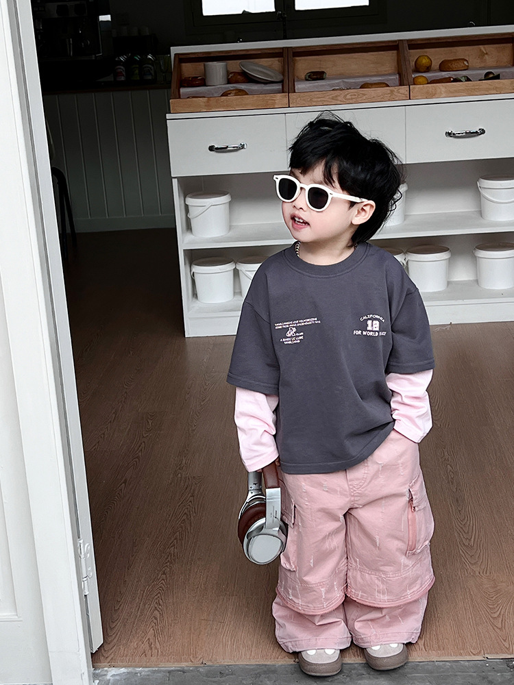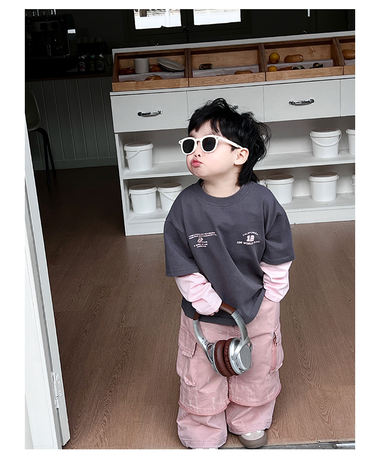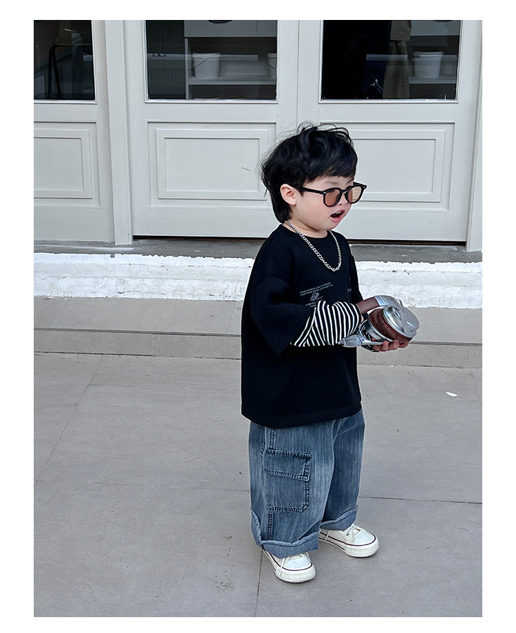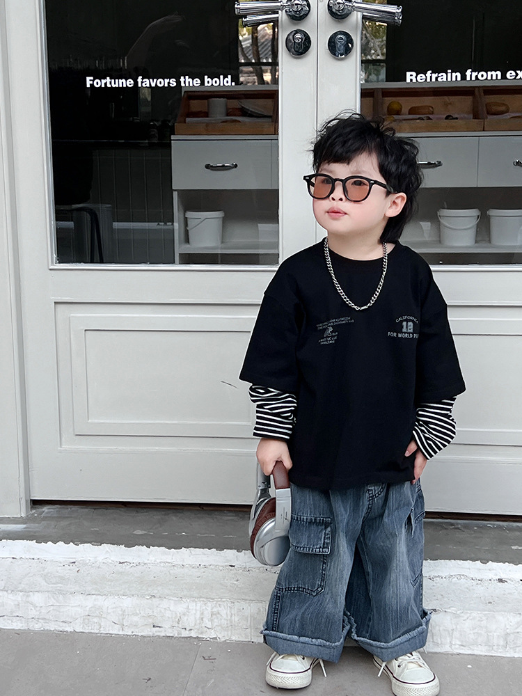 어린이 가짜 투피스 티셔츠 봄과 가을 올 매치 아기 잘 생긴 긴팔 탑 남자 어린이 한국 스타일 유행 티셔츠 스티칭 트렌디스토어 가기
