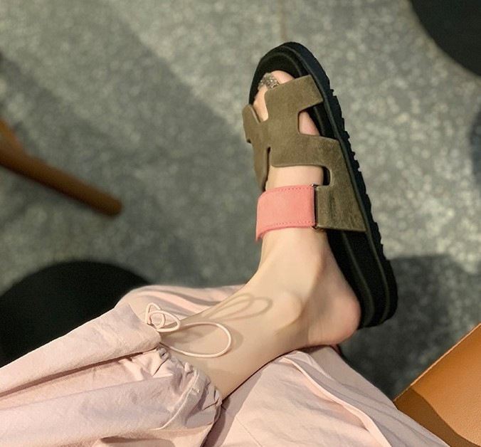 국경 간 플러스 사이즈 2025 여름 새로운 대외 무역 슬리퍼 여성 두꺼운 바닥 한 단어 벨크로 유럽과 미국 컬러 슬리퍼스토어 가기