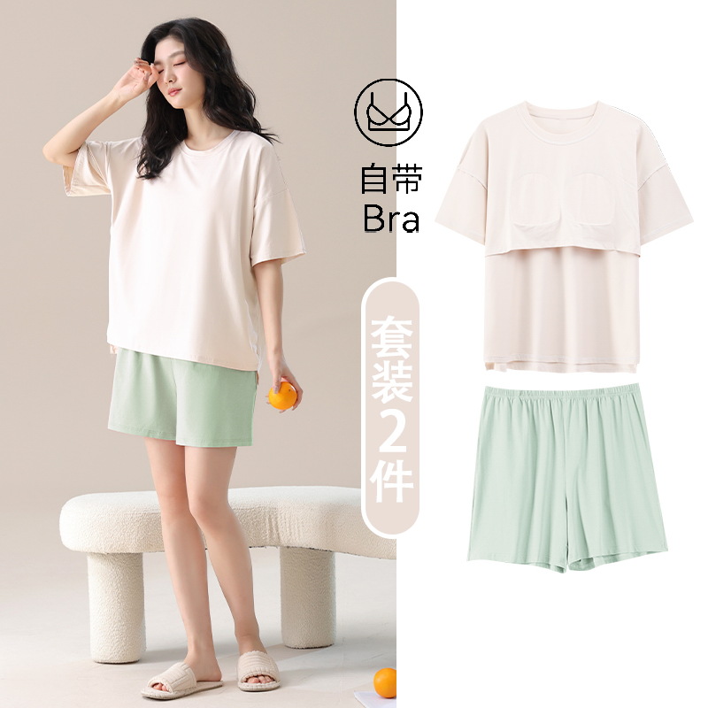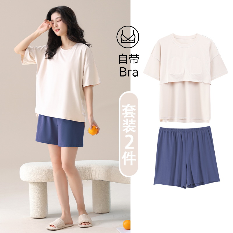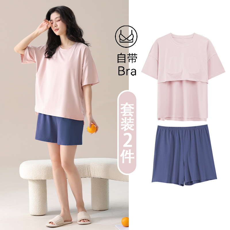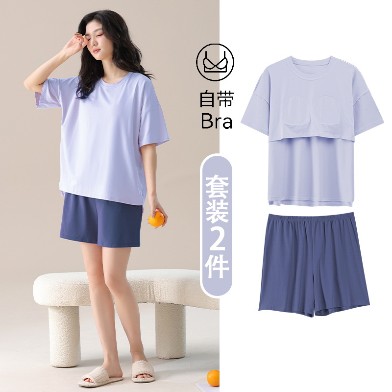 커플 잠옷 여성 모달 여름 반팔 간단한 캐주얼 남성 얇은 의류 반팔 홈 의류 세트스토어 가기