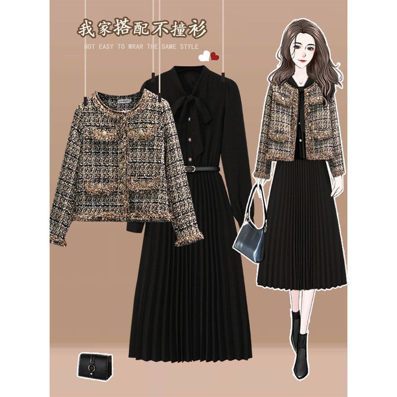 플러스 사이즈 여자 가을 겨울 세트 새로운 세련된 카디건 재킷 유행 슬리밍 올 매치 원피스 투피스 세트스토어 가기