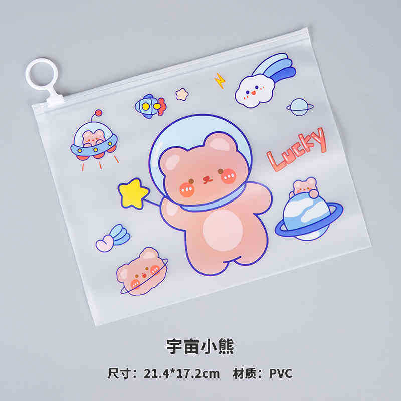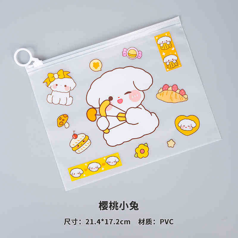 만화 투명 파일 가방 학생 지퍼 저장 가방 귀여운 종이 빌 마무리 자체 밀봉 가방 비닐 봉투
