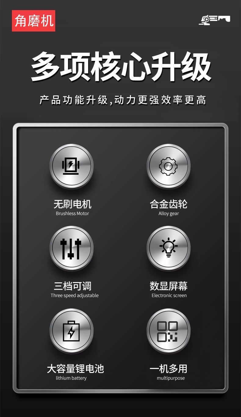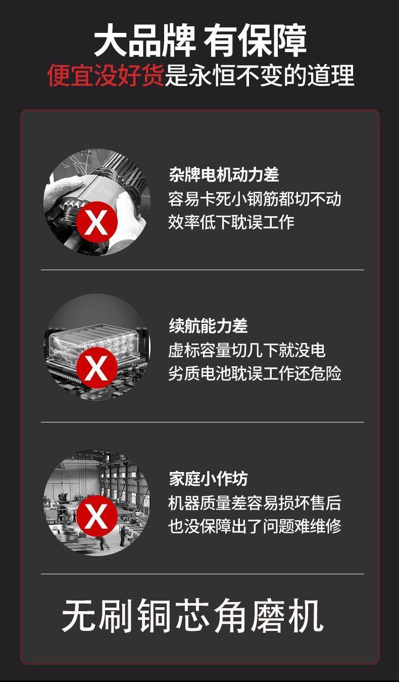 • 수입 기술 [순동 브러시리스 모터] 50년 보증 - 단일 기계 + 배터리 액세서리는 포함되지 않은 브러시리스 앵글 그라인더