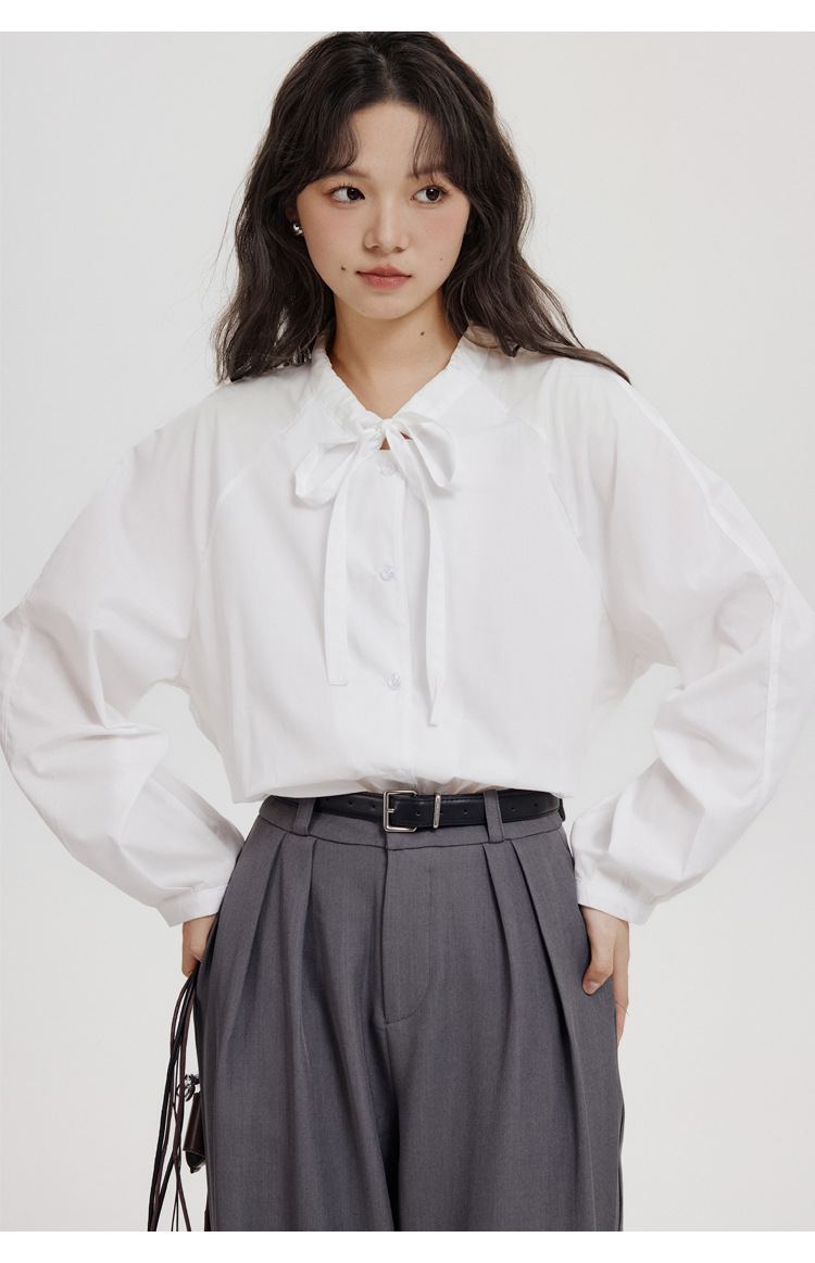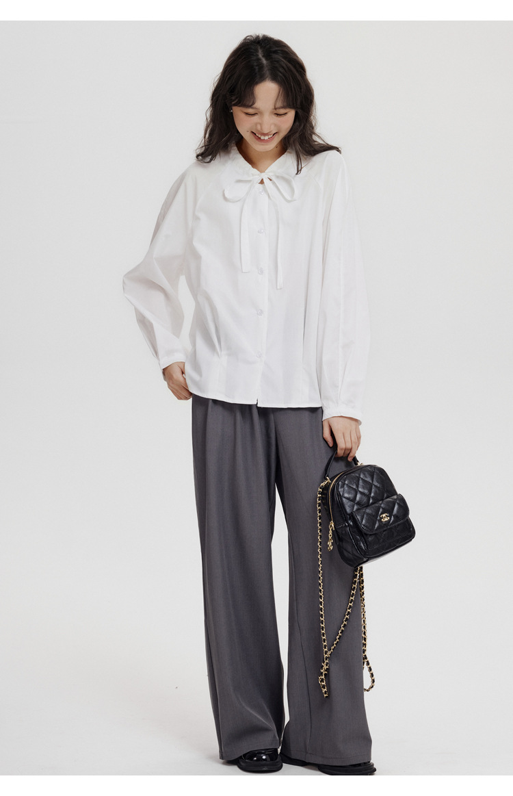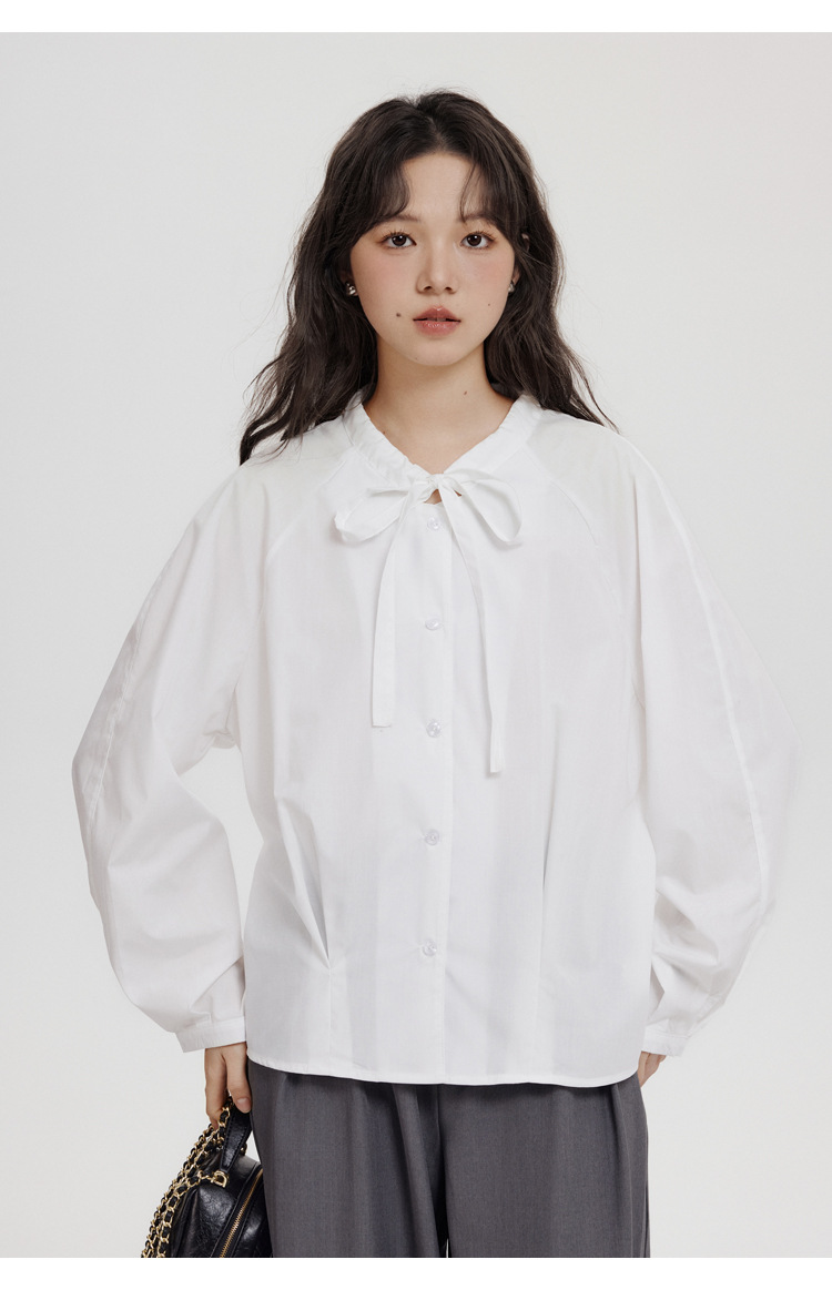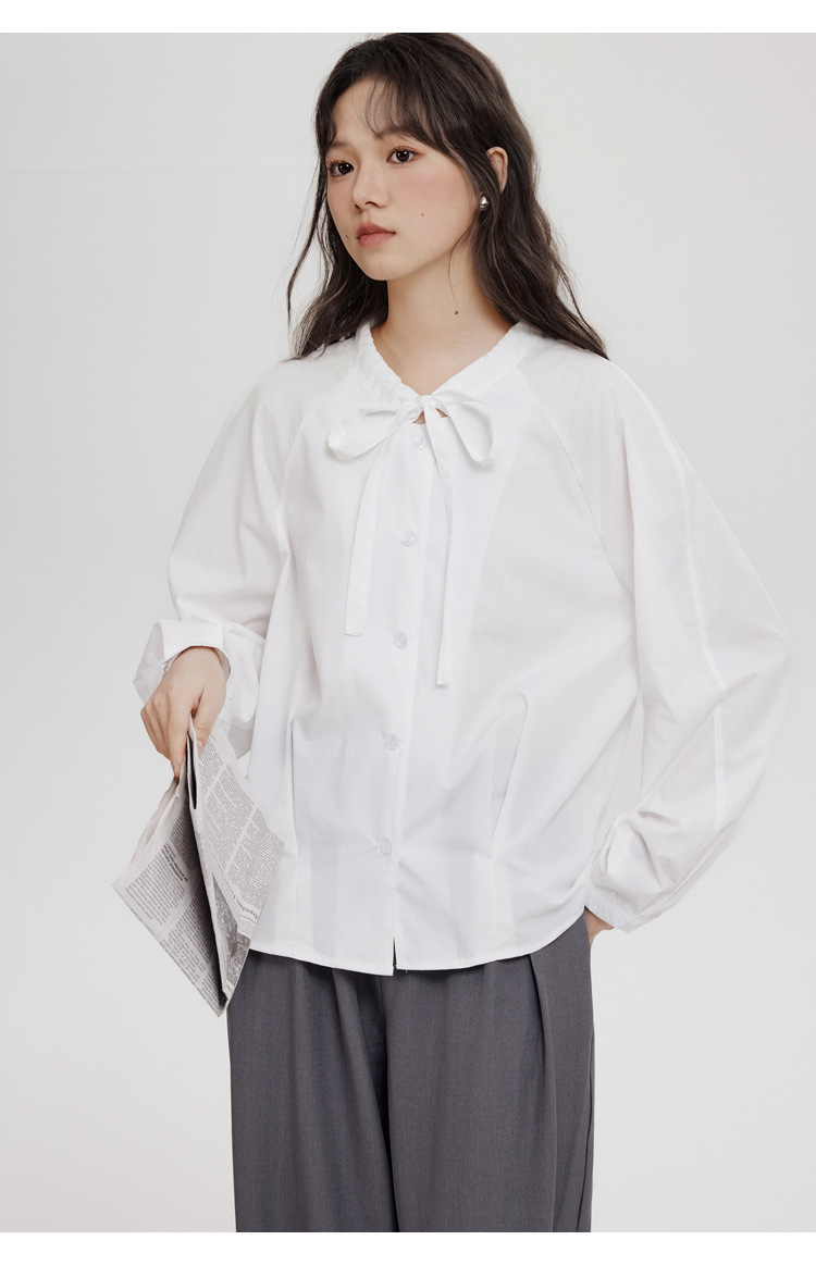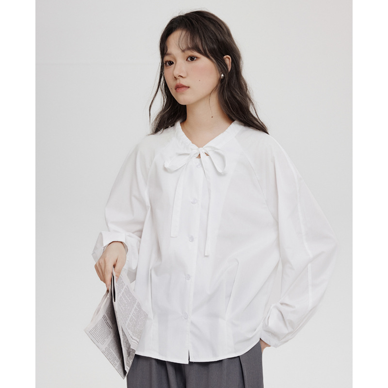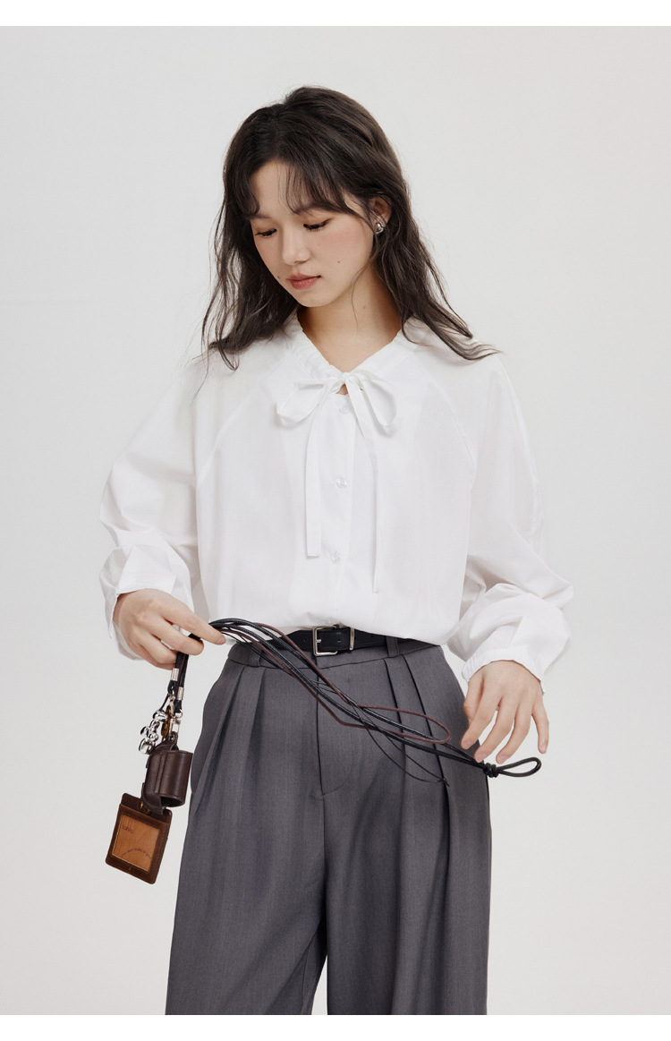 봄 2025 새로운 프랑스 달콤한 통근 인터뷰 나이를 줄이는 슬리밍 레이스 업 여성을위한 흰색 긴 소매 최고 셔츠스토어 가기