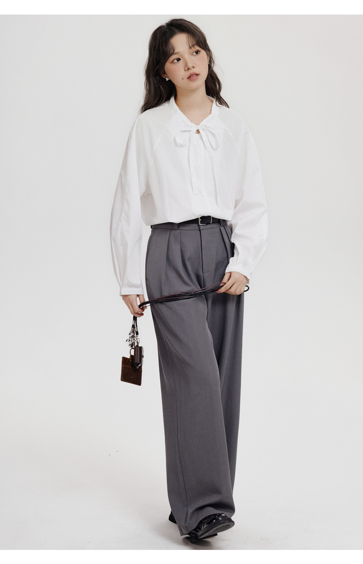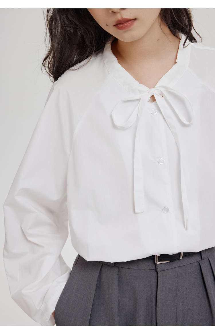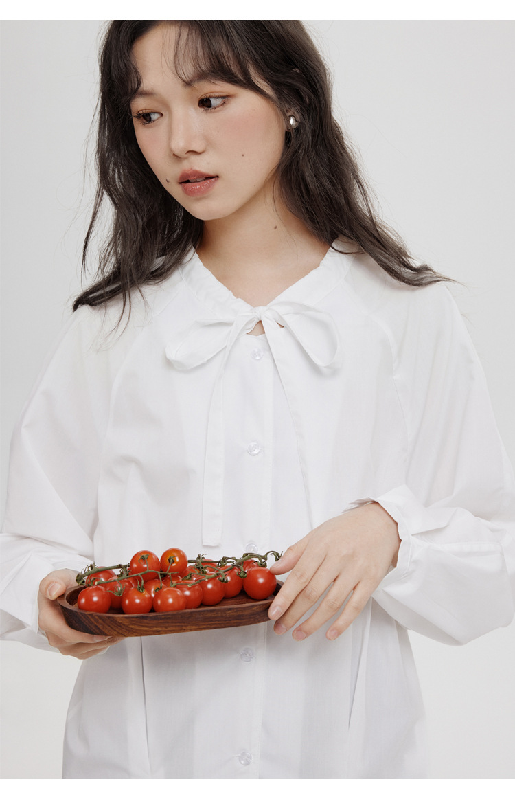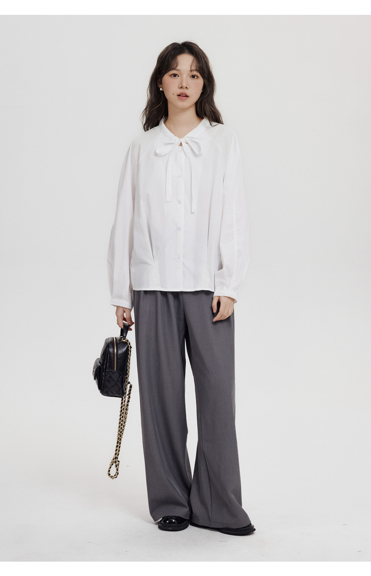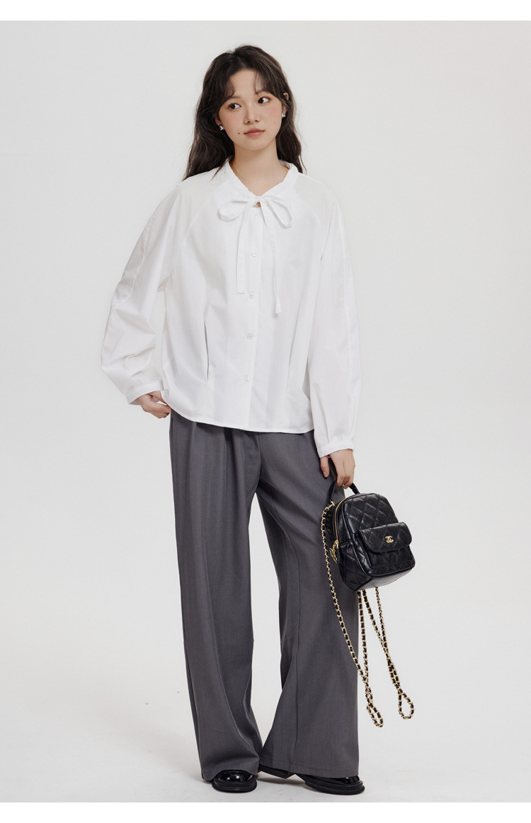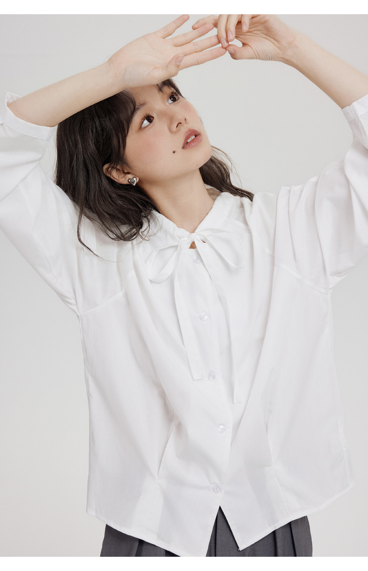 봄 2025 새로운 프랑스 달콤한 통근 인터뷰 나이를 줄이는 슬리밍 레이스 업 여성을위한 흰색 긴 소매 최고 셔츠스토어 가기