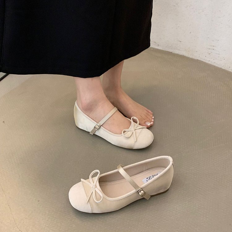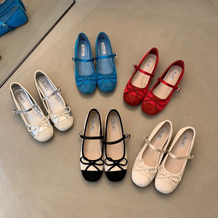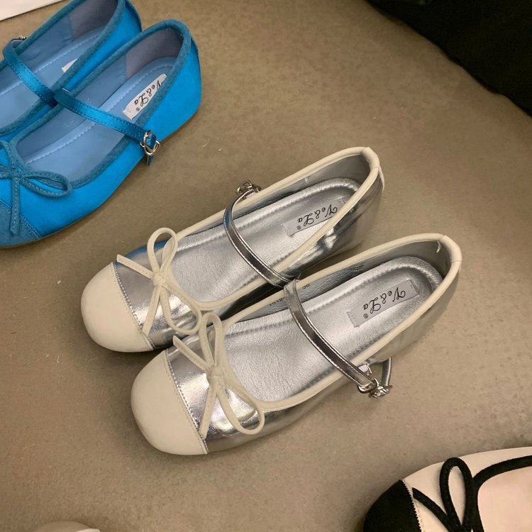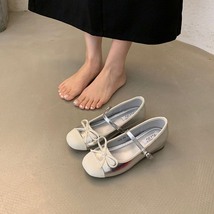 프랑스 스타일 틈새 라운드 토 패치 워크 두꺼운 단일 레이어 신발 여성의 2025 봄 젠틀 스타일 활 부드러운 바닥 높이 증가 펌프