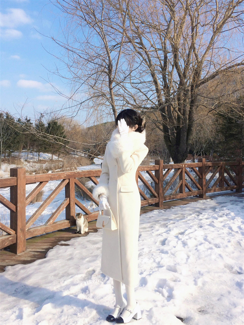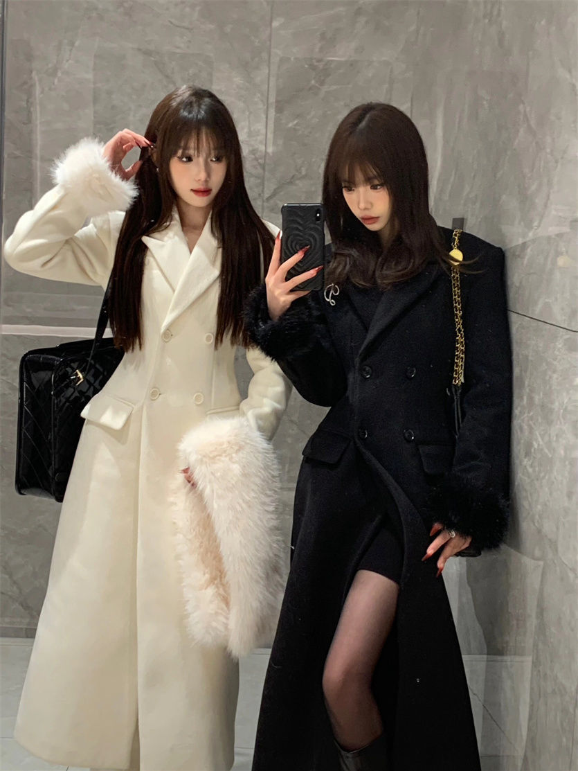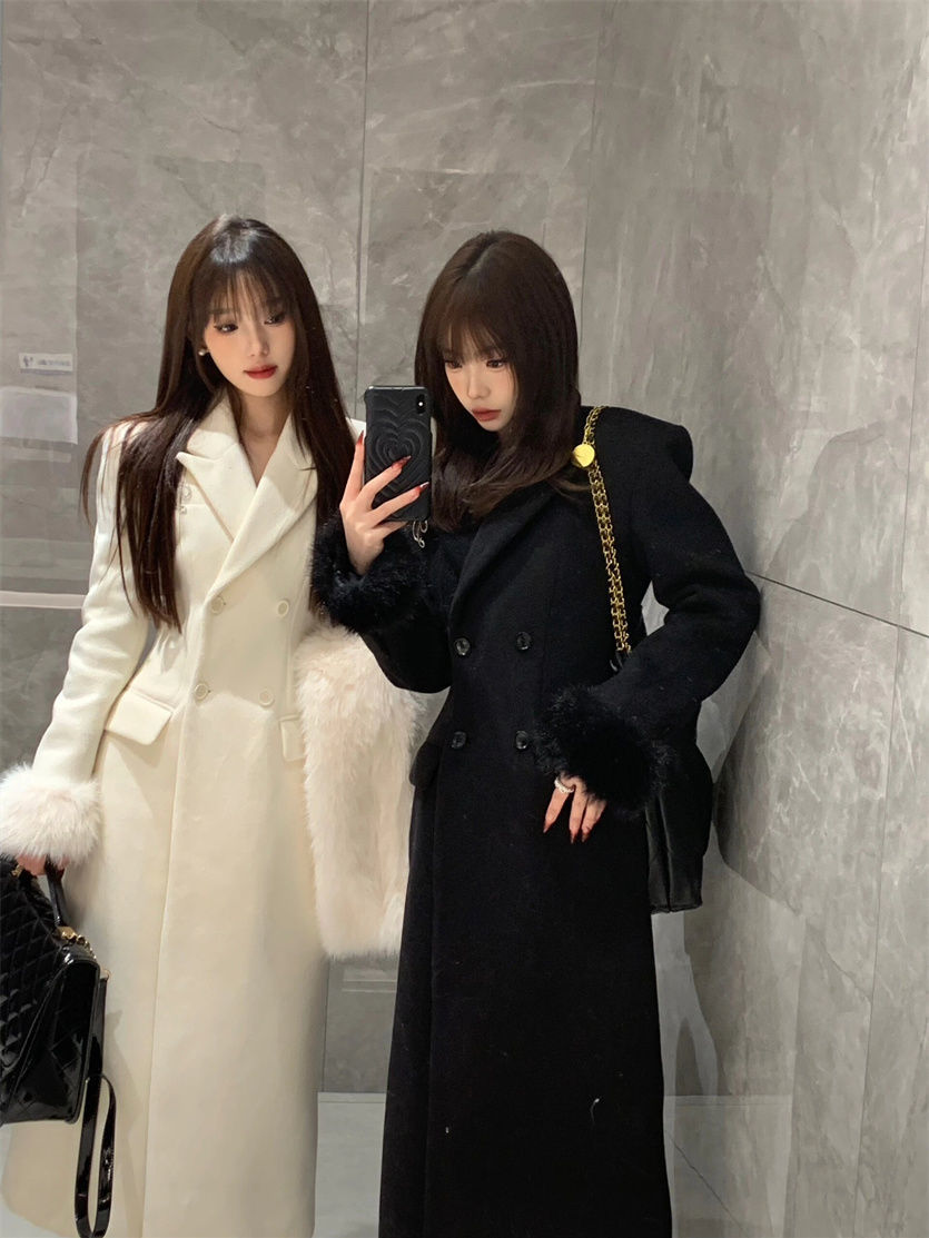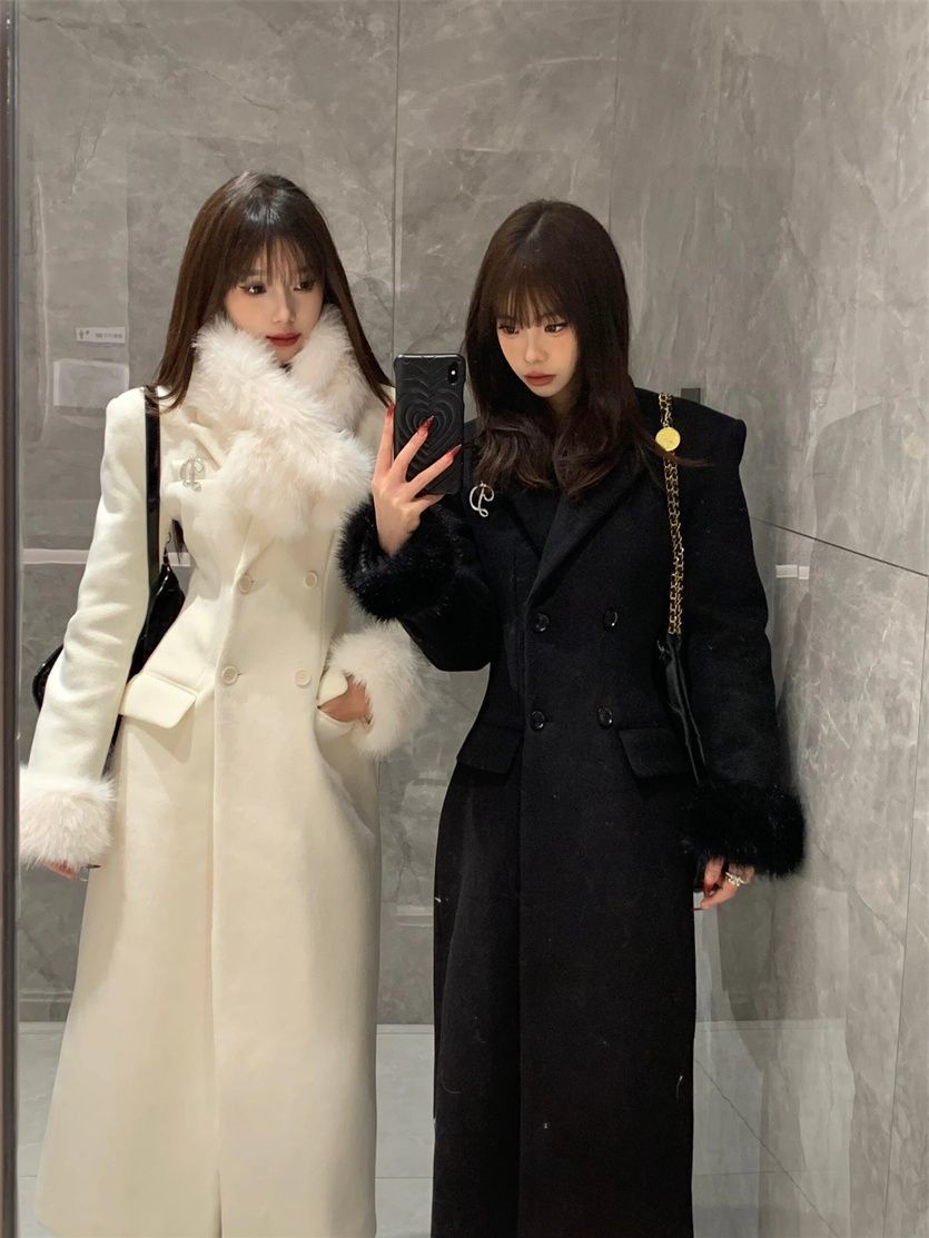 부유 한 가족 딸 느낌 세트 모직 코트 겨울 새로운 실루엣 허리 긴 모직 코트 여성 패션스토어 가기