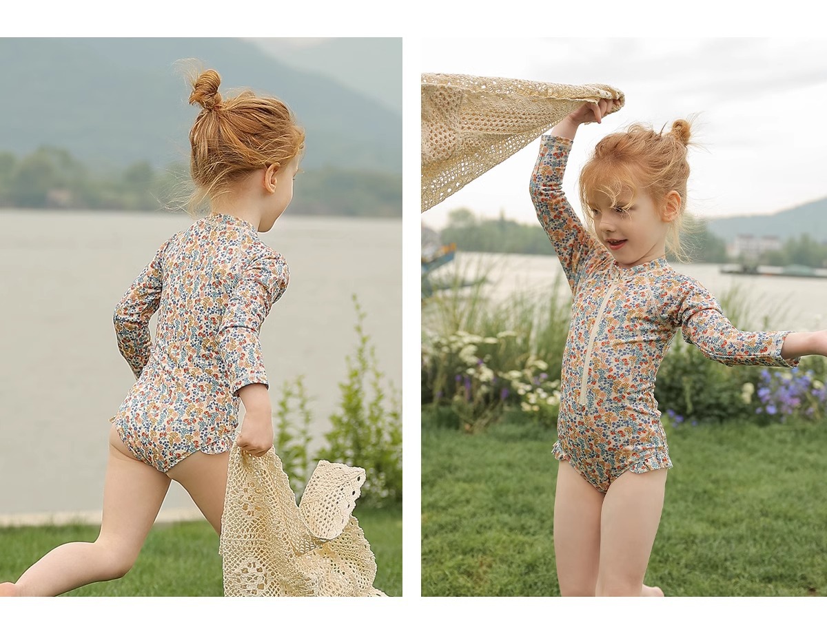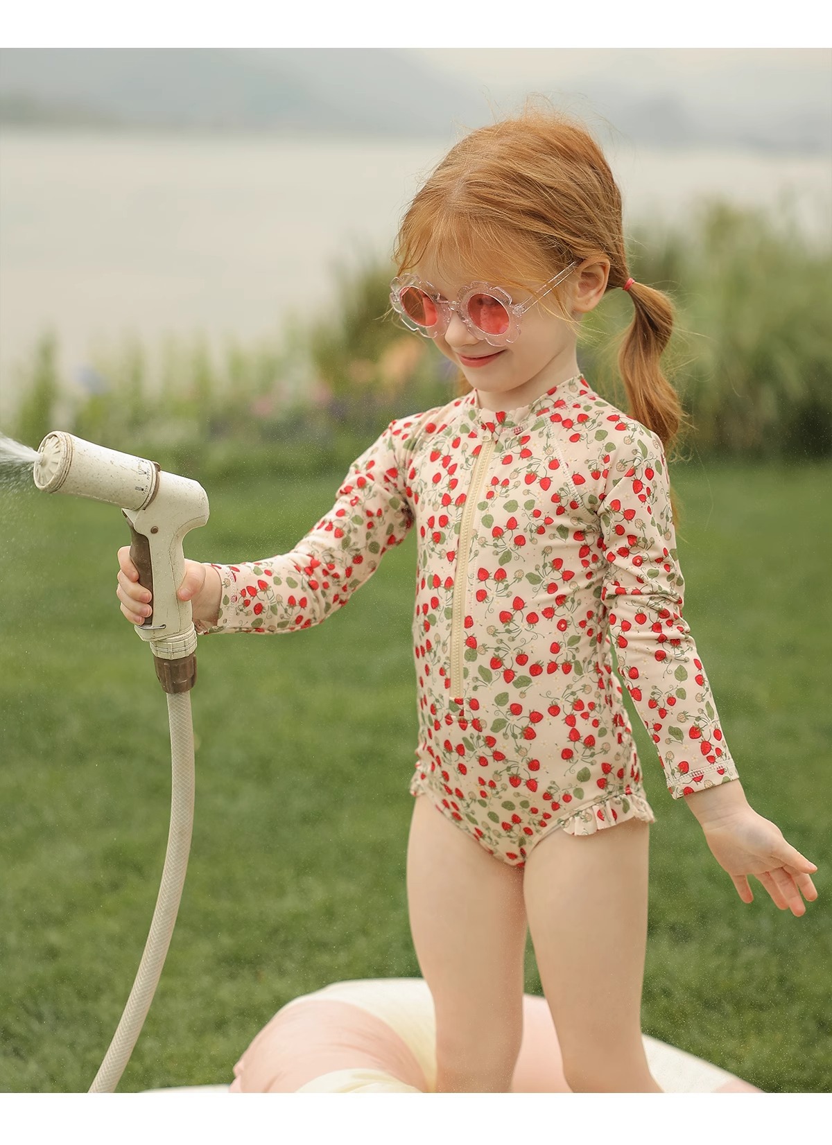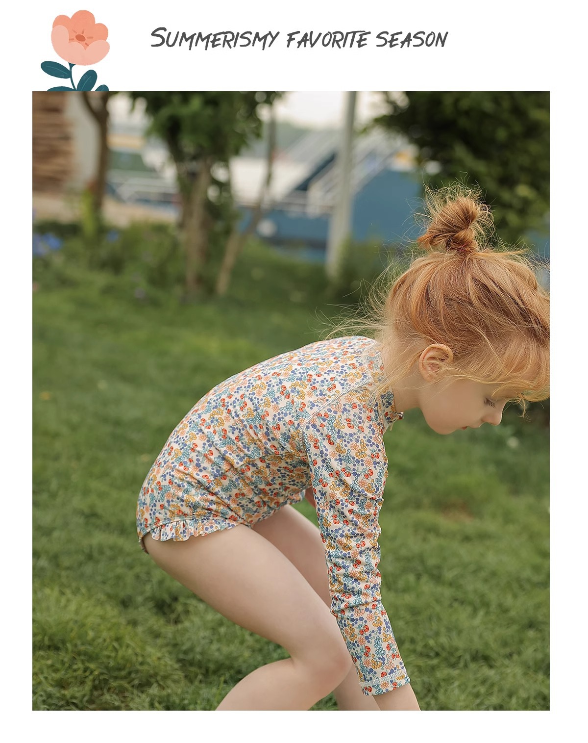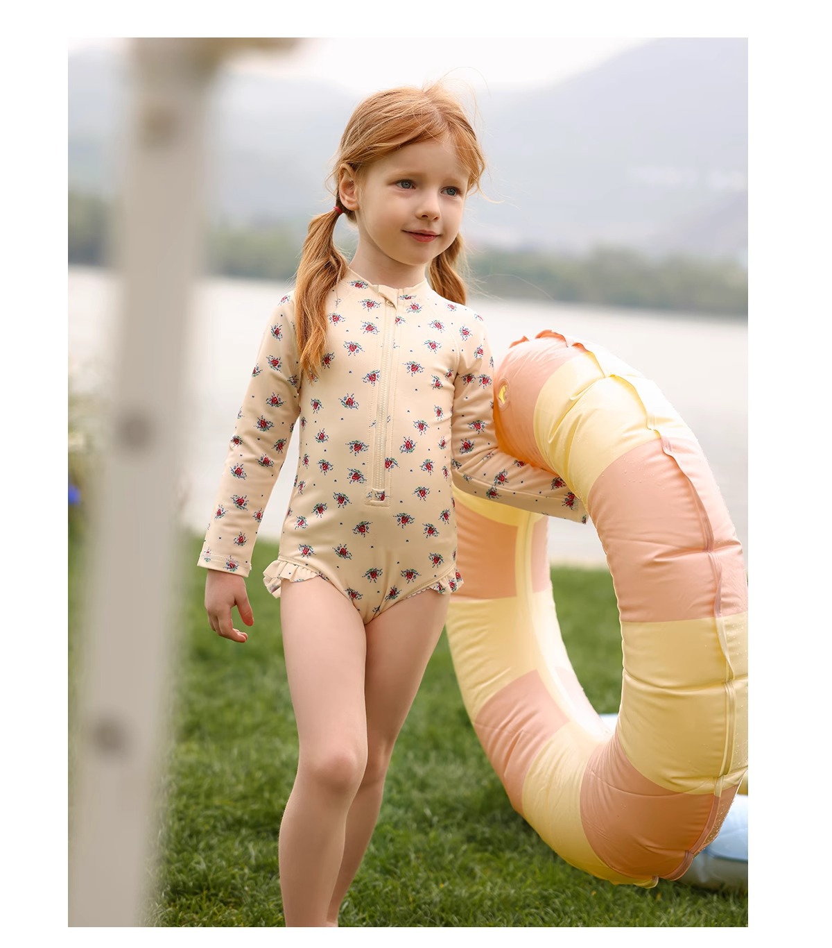 소녀 수영복 2025 새로운 여름 귀여운 원피스 어린 소녀를위한 중형 어린이 서양식 선 스크린 긴팔 수영복