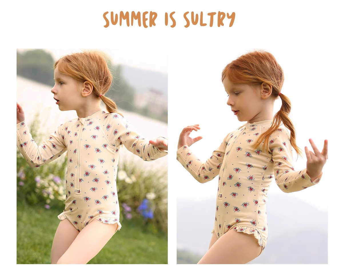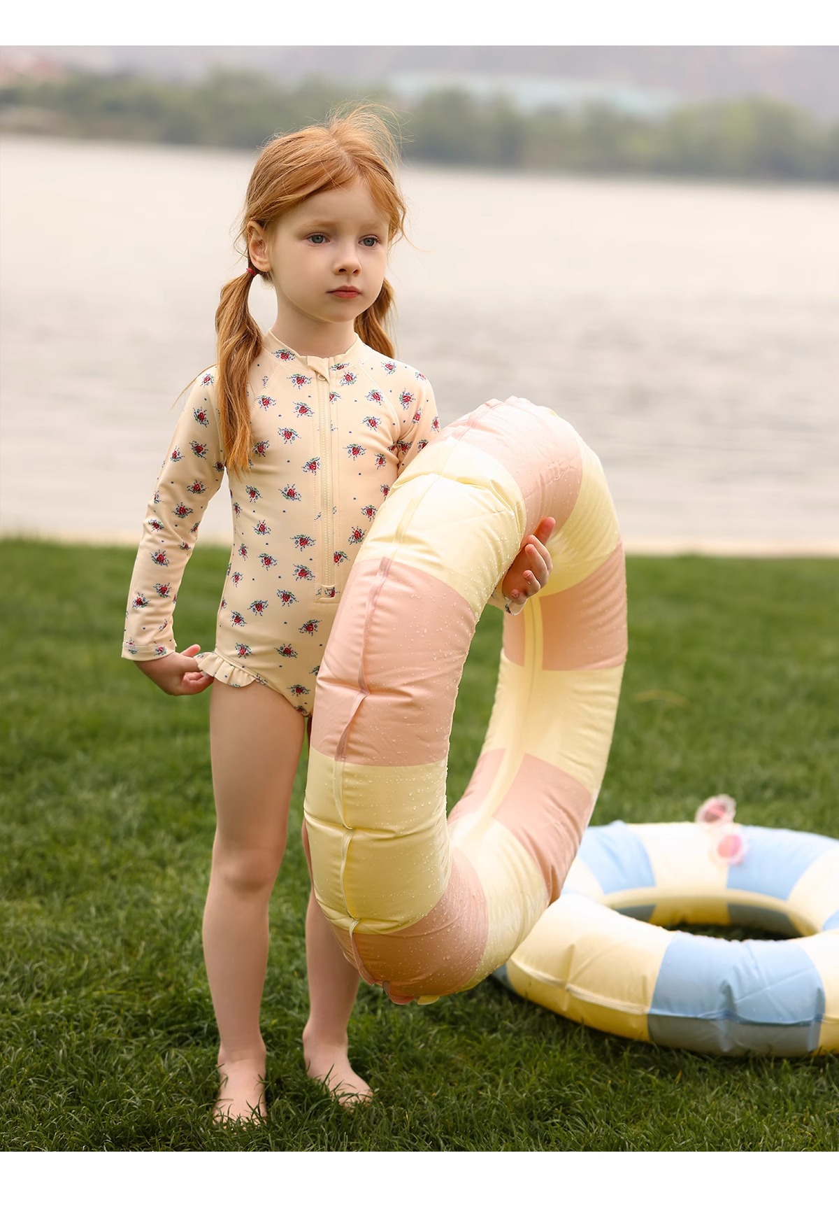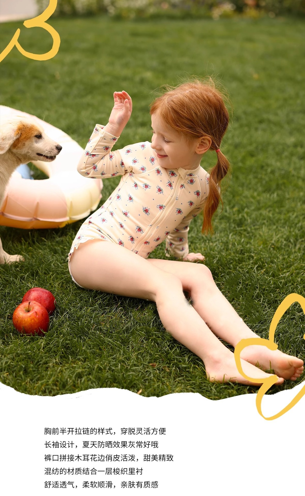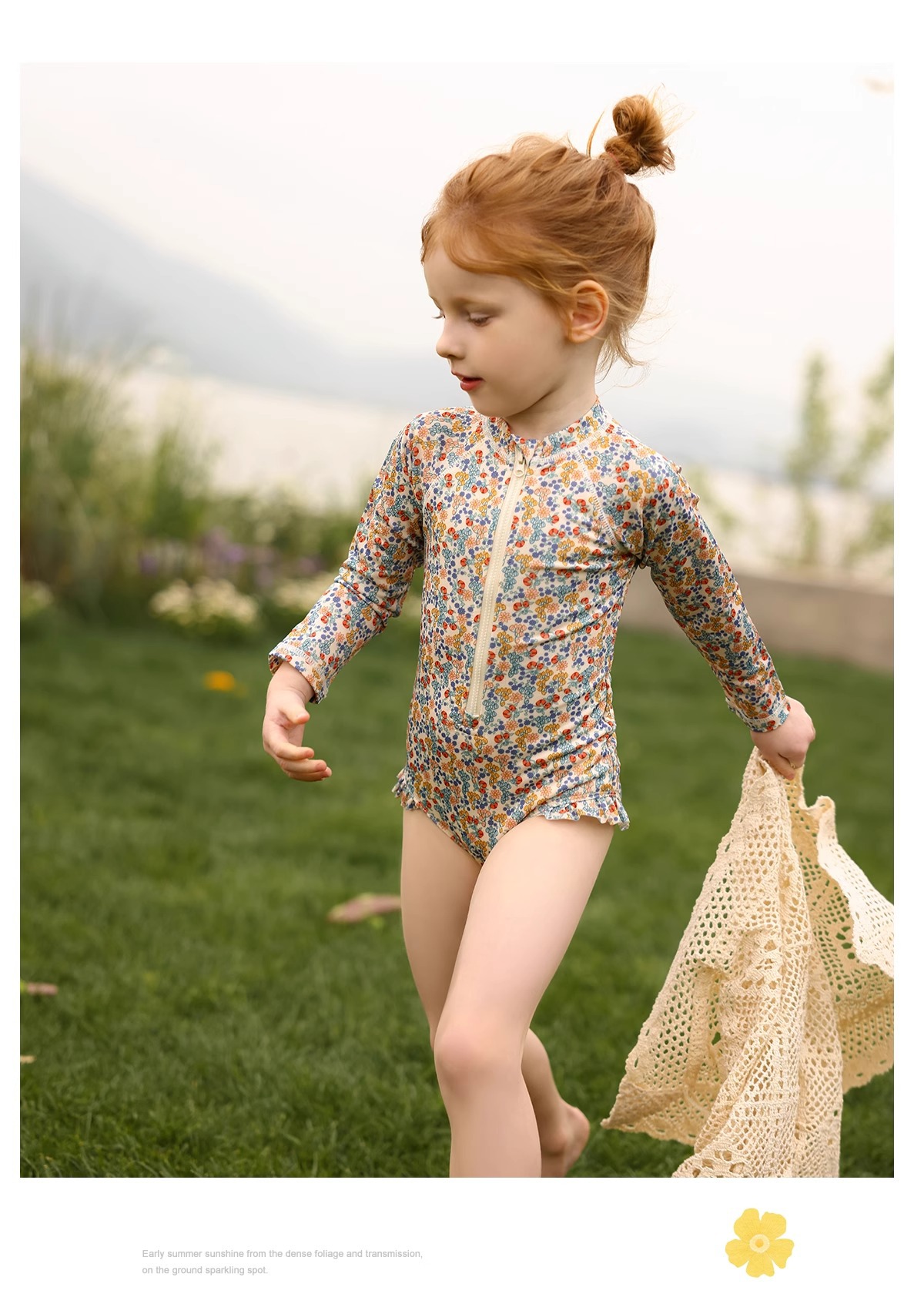 소녀 수영복 2025 새로운 여름 귀여운 원피스 어린 소녀를위한 중형 어린이 서양식 선 스크린 긴팔 수영복