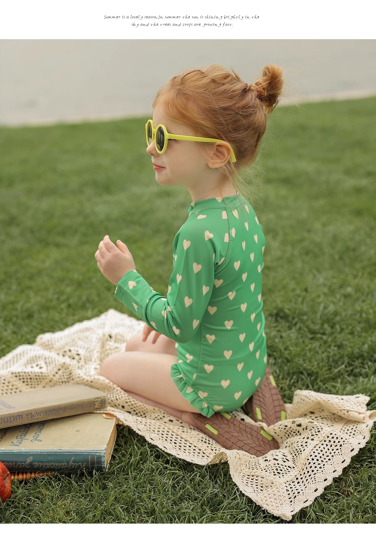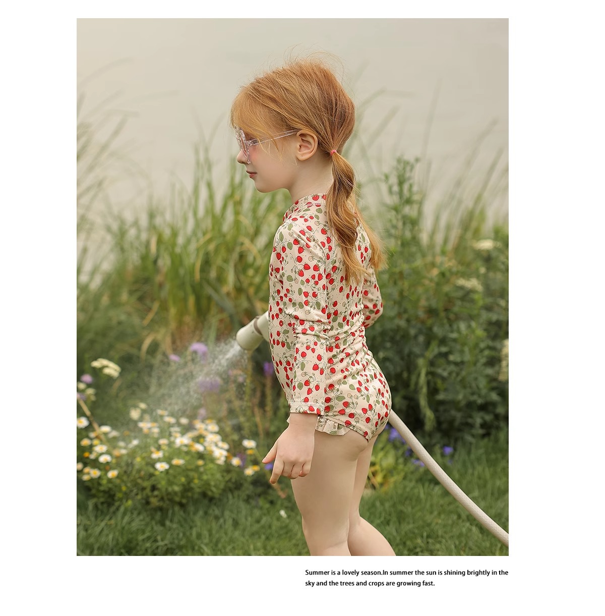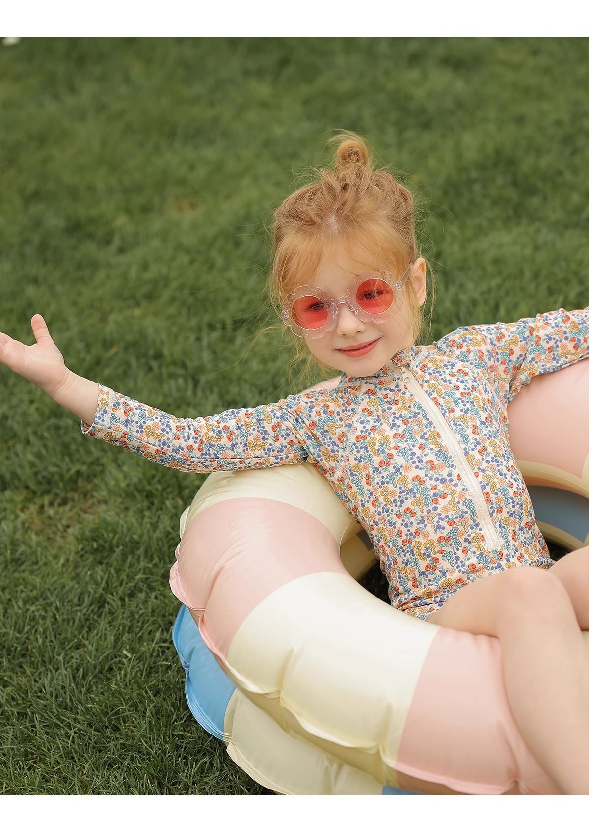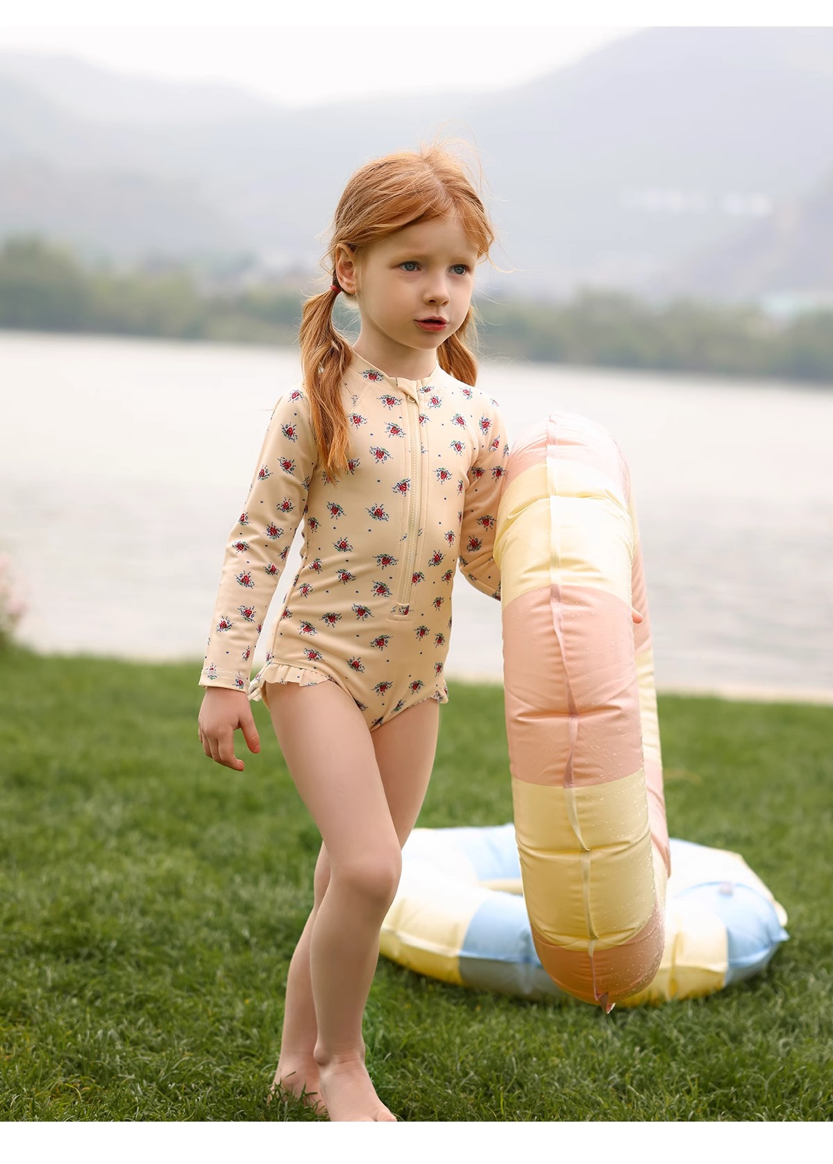 소녀 수영복 2025 새로운 여름 귀여운 원피스 어린 소녀를위한 중형 어린이 서양식 선 스크린 긴팔 수영복