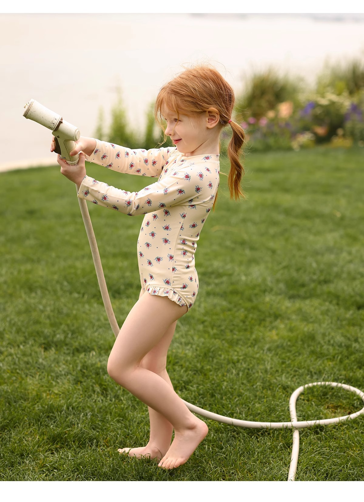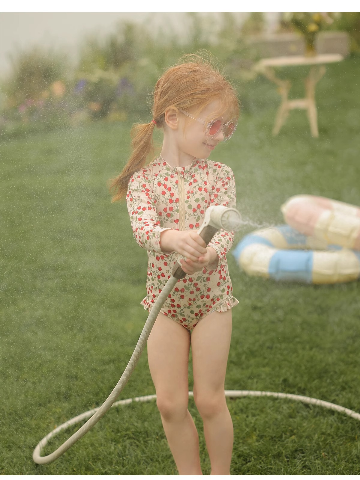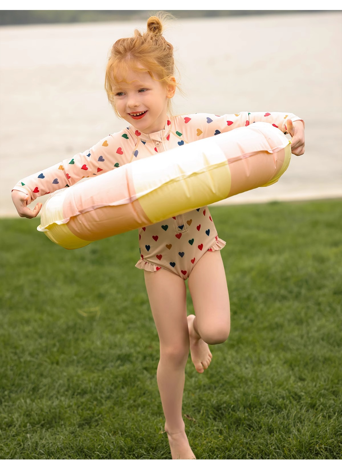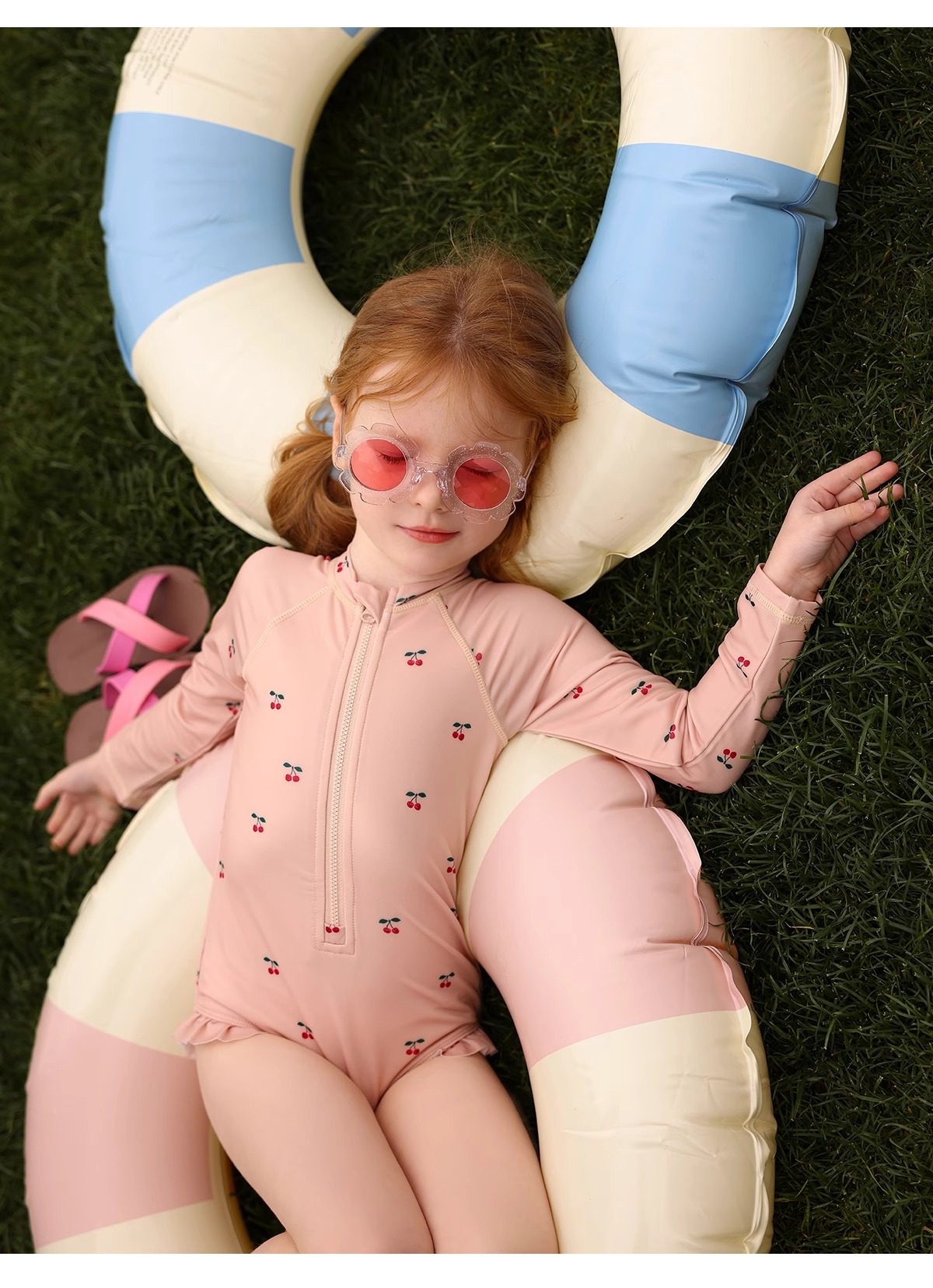 소녀 수영복 2025 새로운 여름 귀여운 원피스 어린 소녀를위한 중형 어린이 서양식 선 스크린 긴팔 수영복