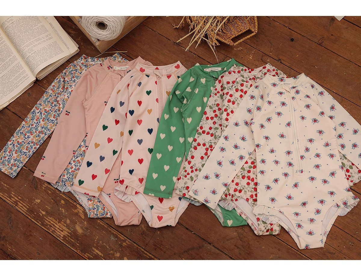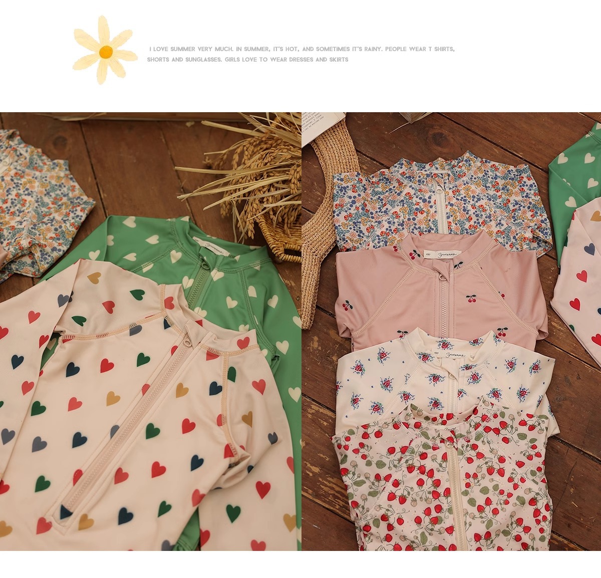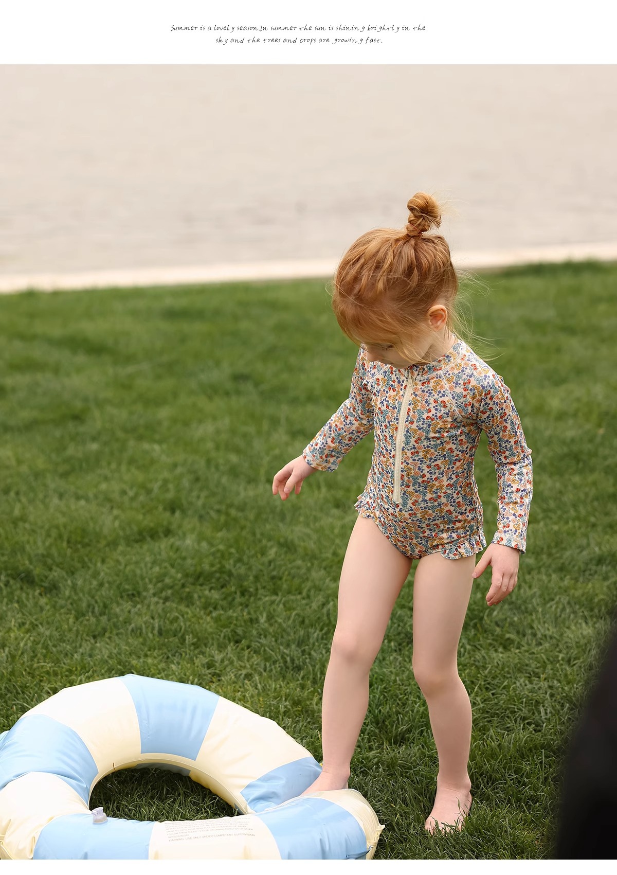 소녀 수영복 2025 새로운 여름 귀여운 원피스 어린 소녀를위한 중형 어린이 서양식 선 스크린 긴팔 수영복스토어 가기
