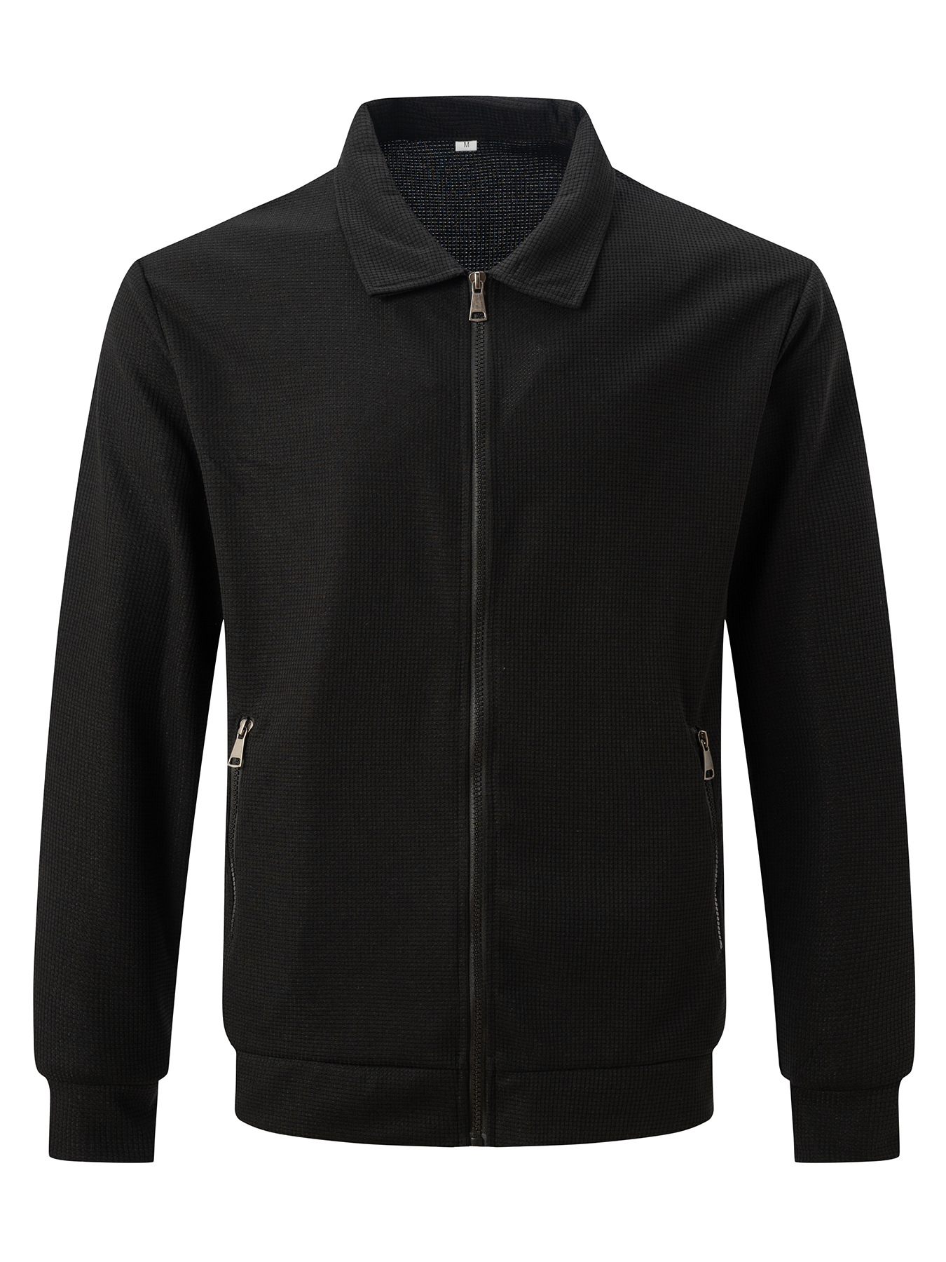 테무 쉬인 남성 가을 와플 지퍼 포켓 라펠 가디건