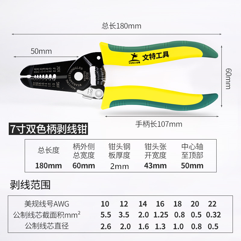 • 녹색 및 노란색 컴포트 핸들 와이어 스트리퍼 7inch