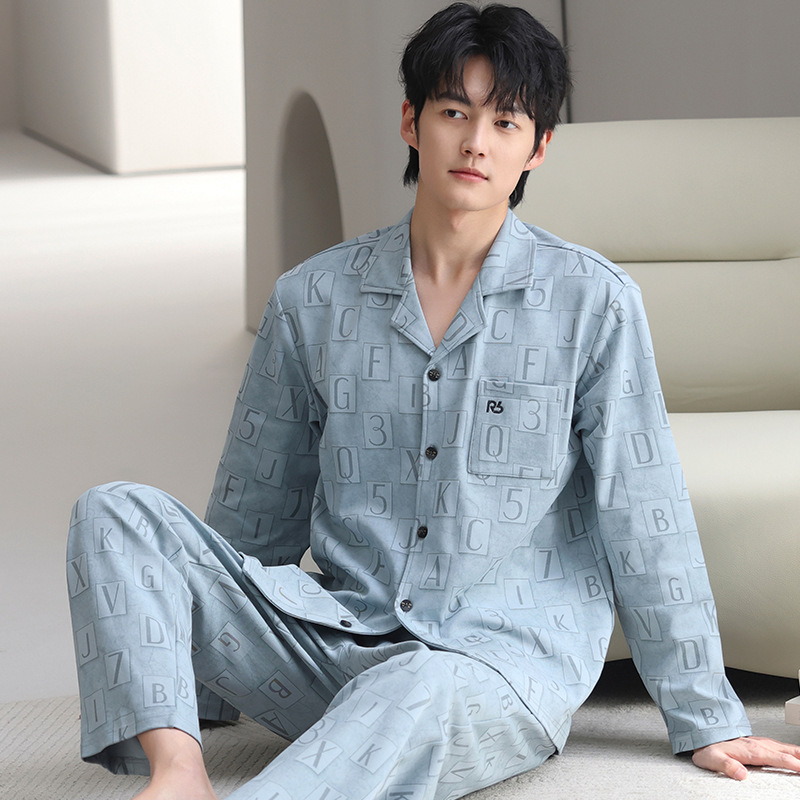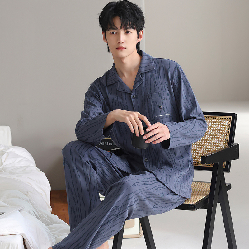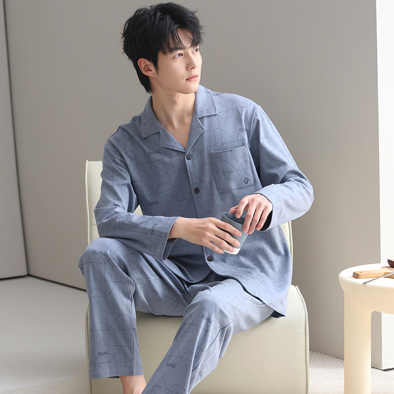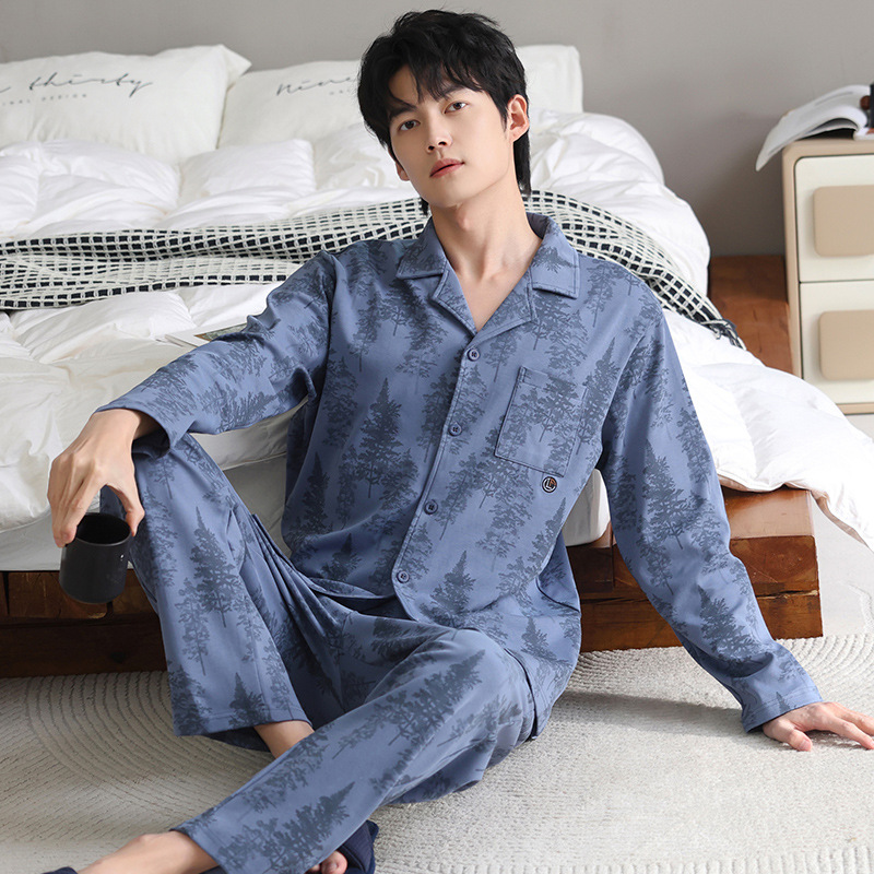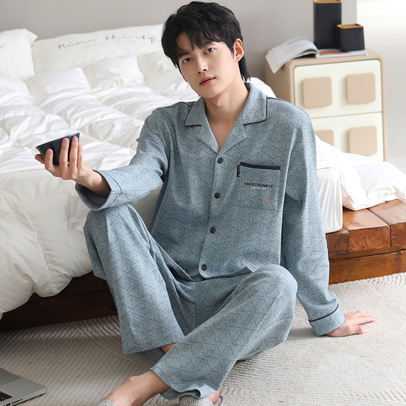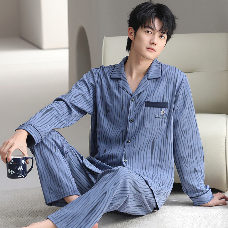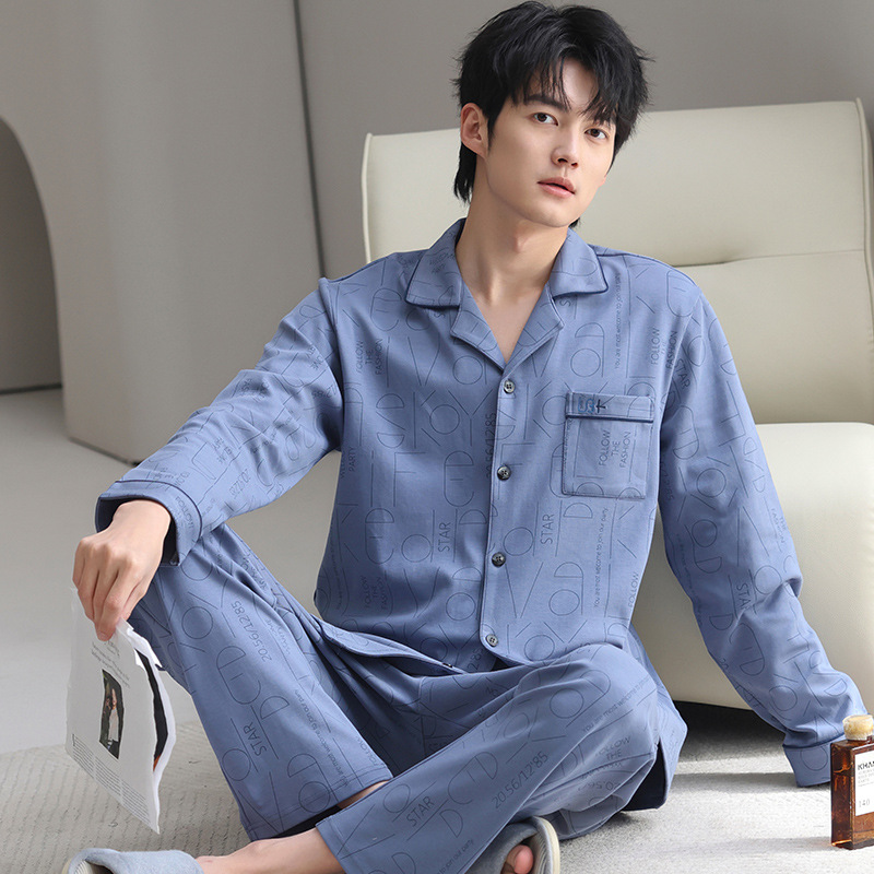 남자 잠옷 가을과 겨울 순면 긴팔 청소년 남성 플러스 사이즈 캐주얼 카디건 봄 가을 홈웨어스토어 가기
